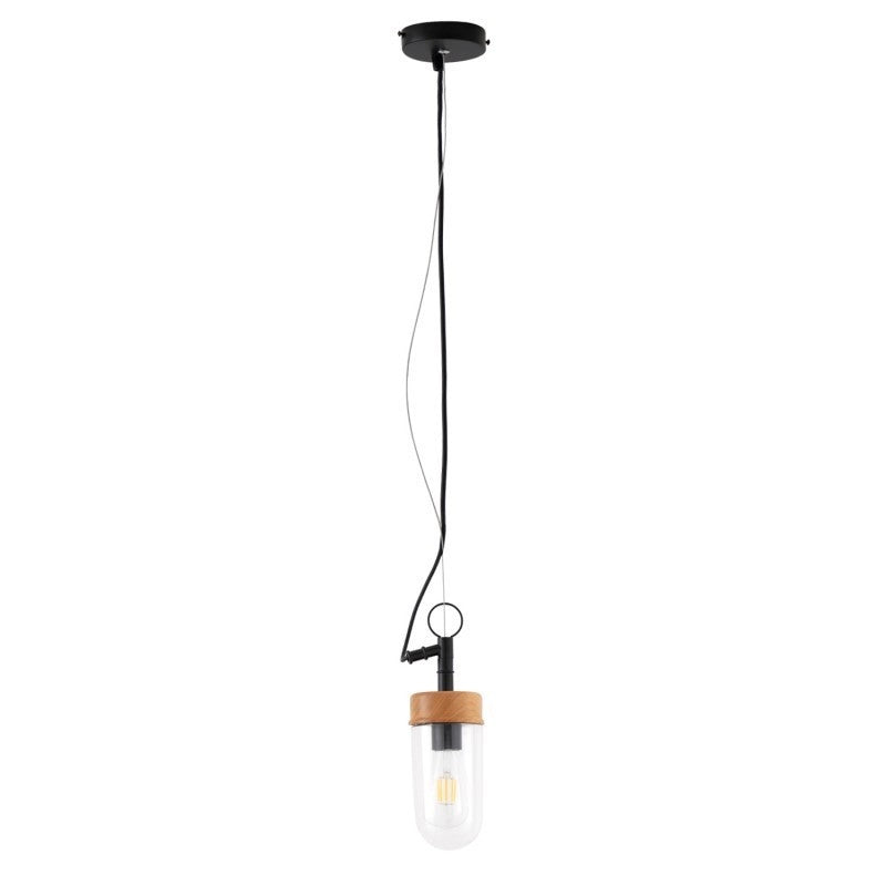 Biar pendant lamp with Nordic design that combines glass with wood and black metal. The combination of materials and its design make it perfect for Nordic environments.