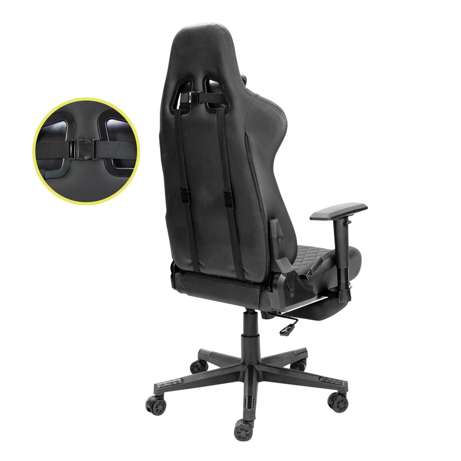 This multi-position gaming chair has an ergonomic design that adjusts to the natural curves of the back, providing a feeling of maximum comfort.