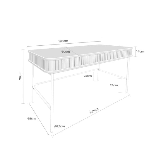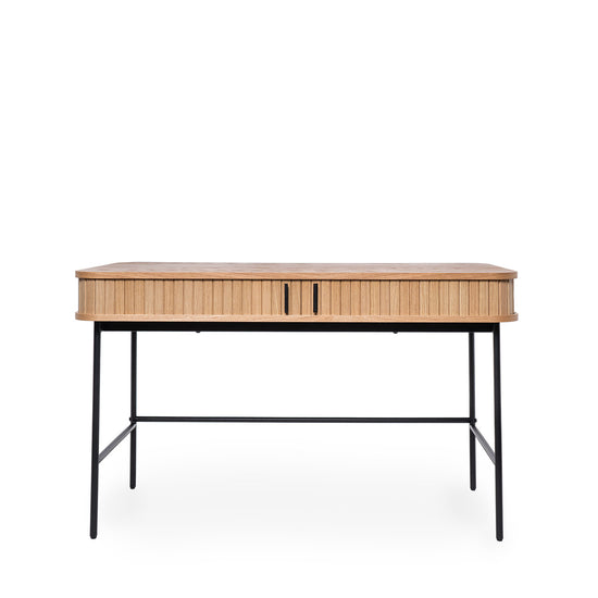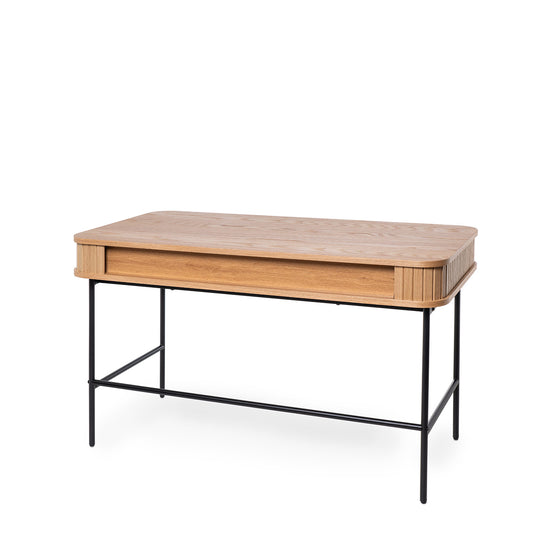 The CORNELL desk is an exceptional piece that perfectly combines elegance and functionality, positioning itself as an ideal choice for those looking to enhance contemporary and sophisticated spaces with a distinctive touch. Crafted with a robust natural oak frame and metal legs with a matte black finish, this desk stands out for its balance between solidity and modernity. The nobleness of the wood combines with the resistance of the metal, ensuring durability and a timeless style that adapts to a variety of decorative settings. Its design is characterized by straight, minimalist lines, which create a clean and organized aesthetic. Furthermore, it incorporates a drawer with slides, a practical and functional detail that enhances its comfort of use. This element not only facilitates storage but also reinforces its original and attractive character, making the CORNELL desk a design piece that perfectly combines form and utility.