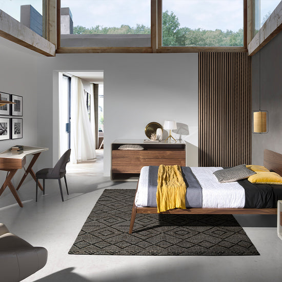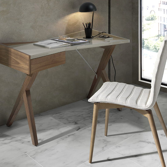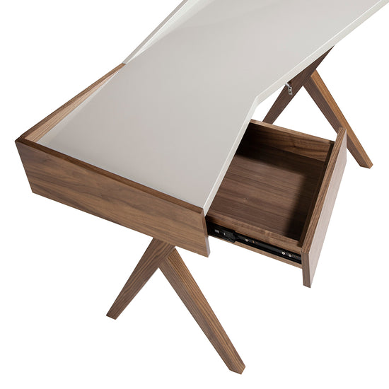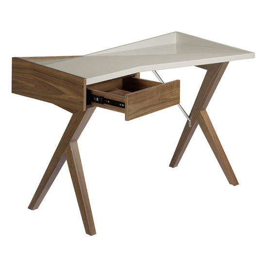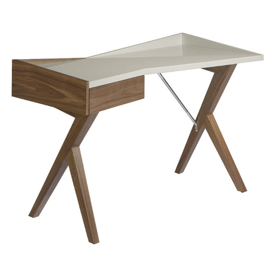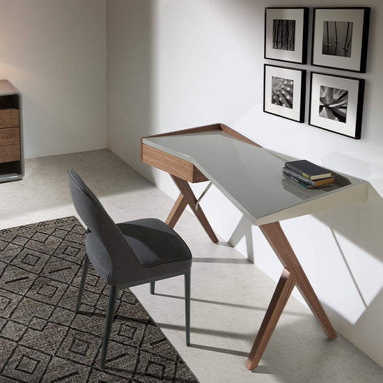 Dakota desk with a modern design and a gray MDF top and a natural walnut veneered wood frame.