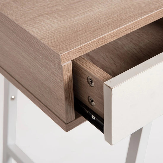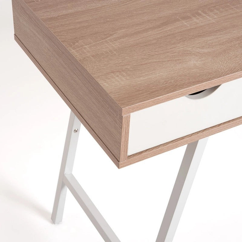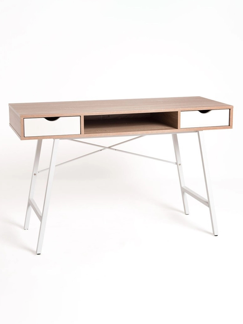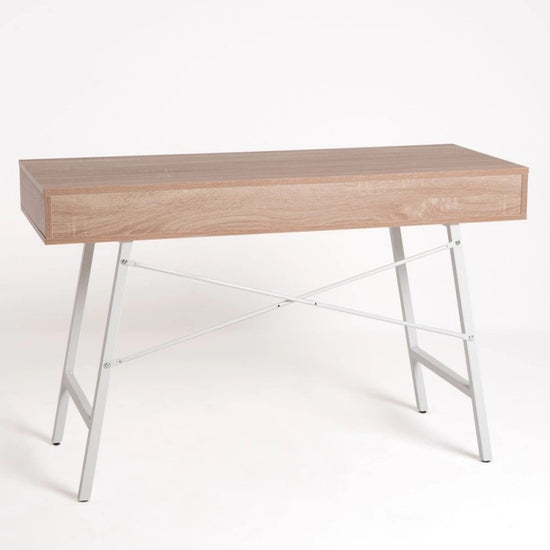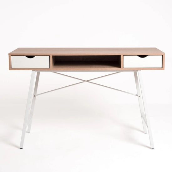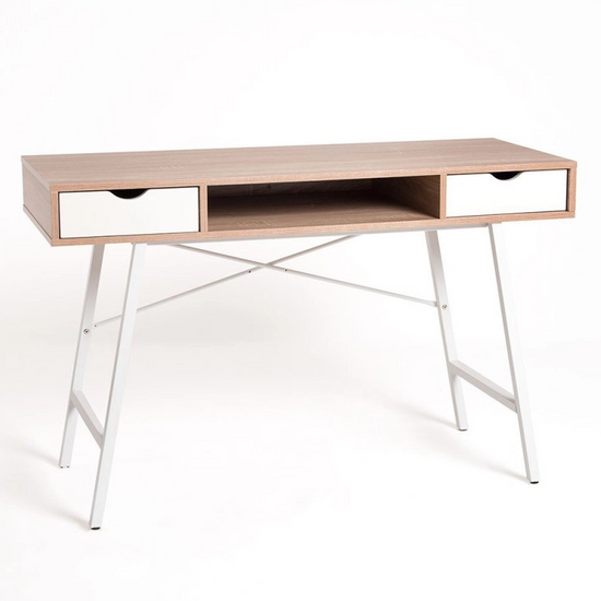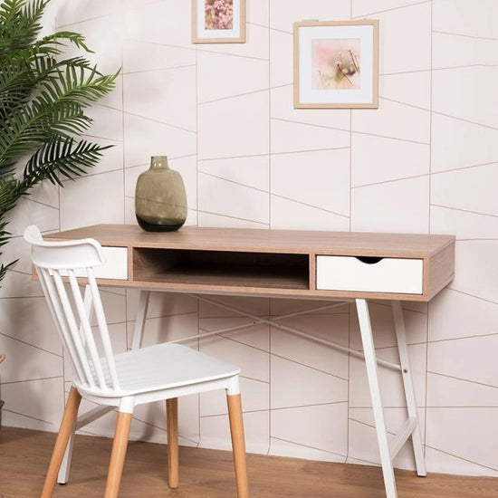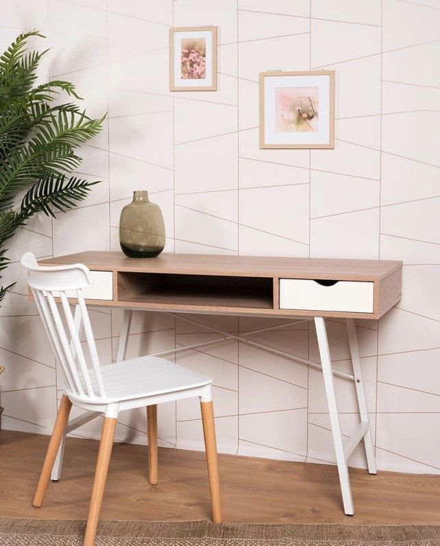 In addition to the spacious surface, it has two drawers, this table in natural wood color combined with its structure, offers a modern and elegant design.