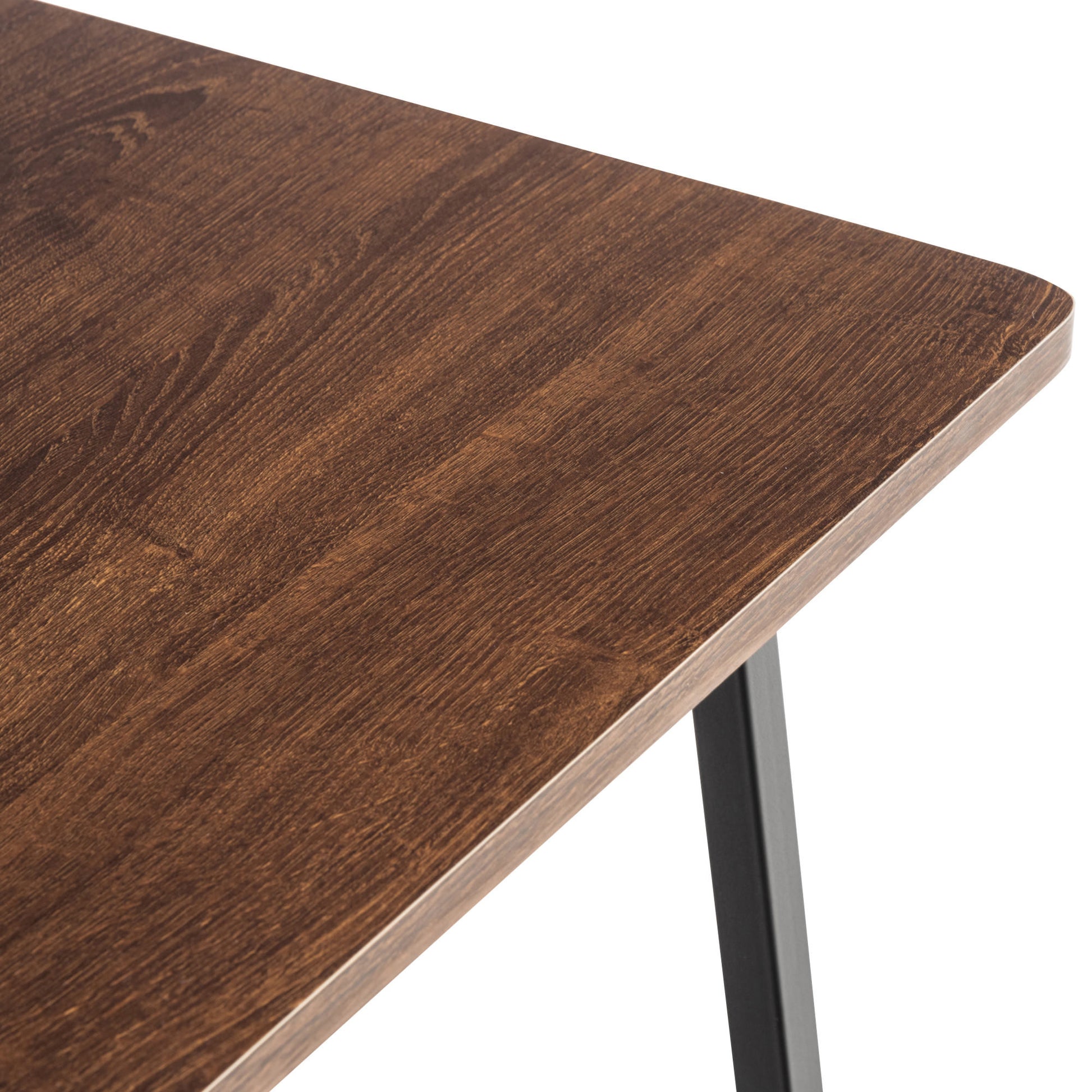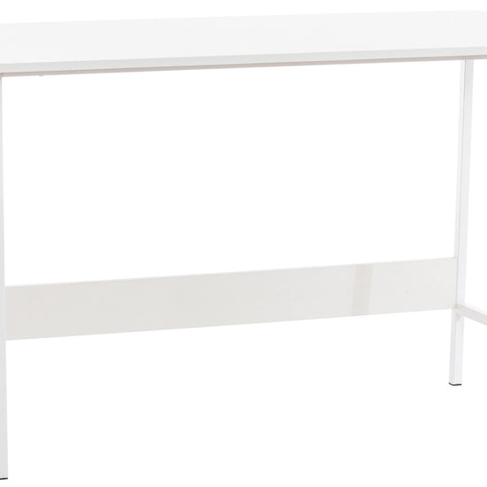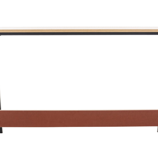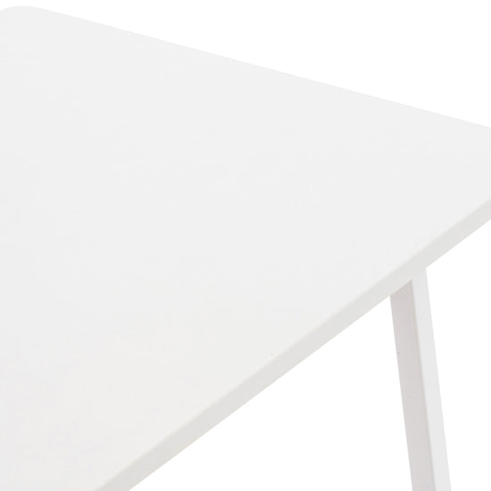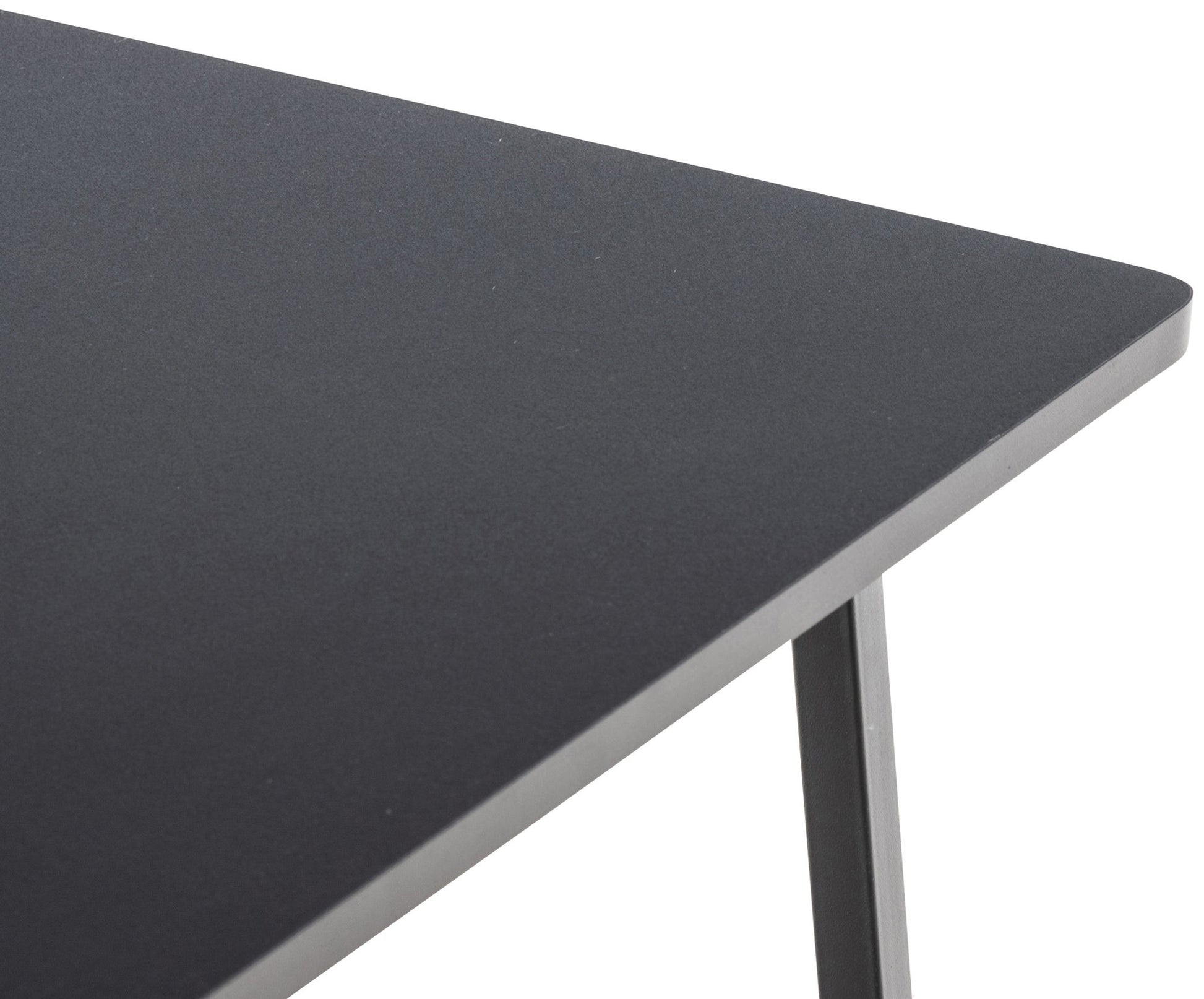 The table top is made of MDF, while it rests smoothly and stably on a painted tubular steel frame.