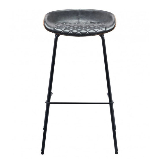 This bar stool with seat and back upholstered in synthetic leather and has a metal structure with a black epoxy finish gives a touch of modernity.