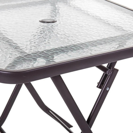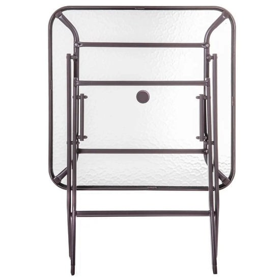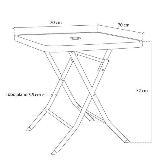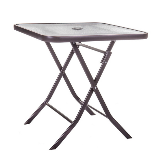 Neila 70 Outdoor Folding Table, square, strong and durable, recommended for 2 people, made with a flat rectangular tubular steel frame base, in brown, lacquered with a specific anti-corrosive epoxy resin treatment for outdoor furniture.