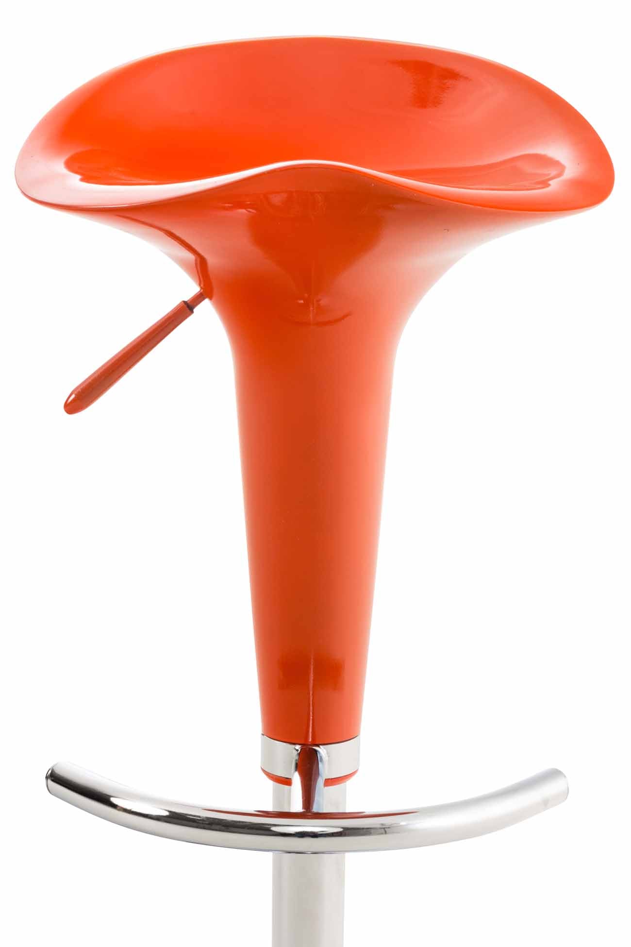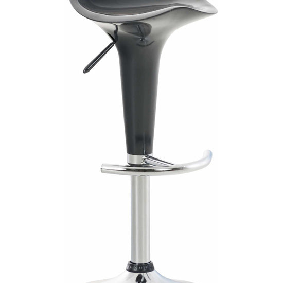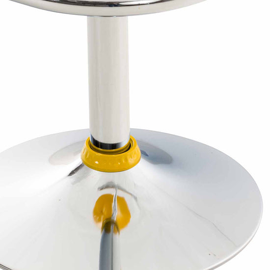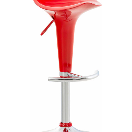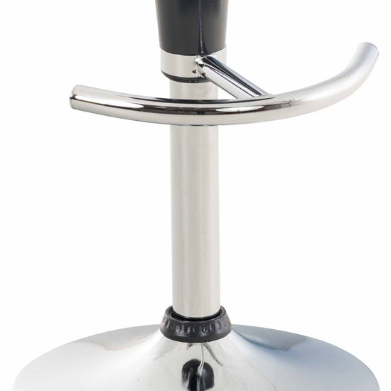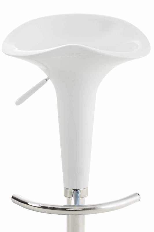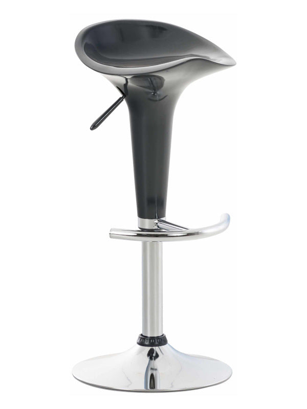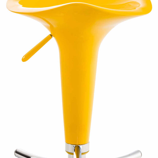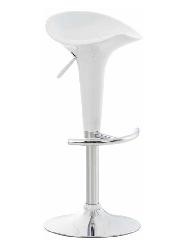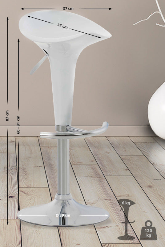 Made of durable polypropylene , this bar stool is easy to clean. The chrome-plated, trumpet-shaped base features a footrest for added comfort. A rubber ring under the base prevents damage to the floor.
