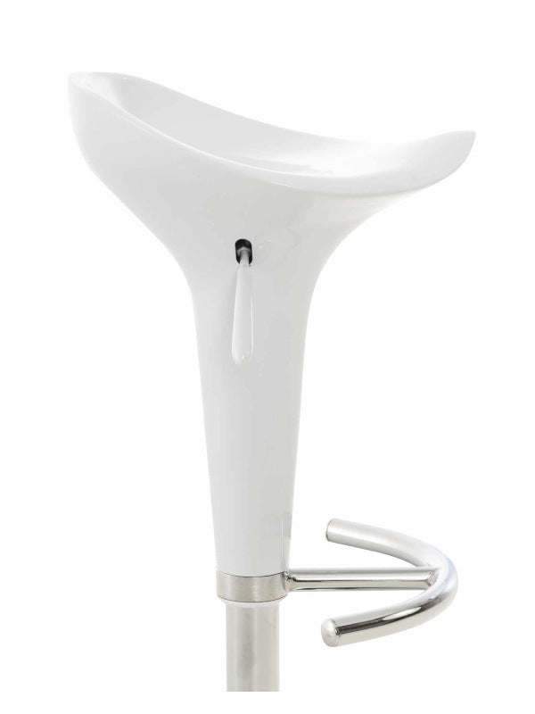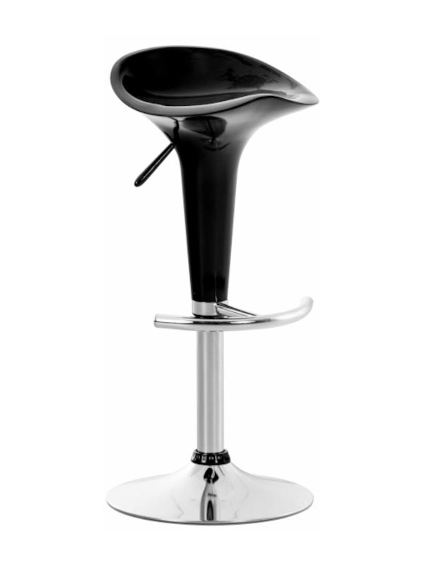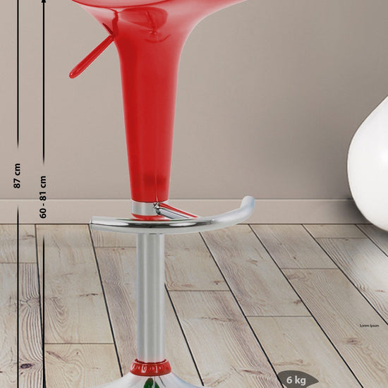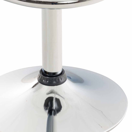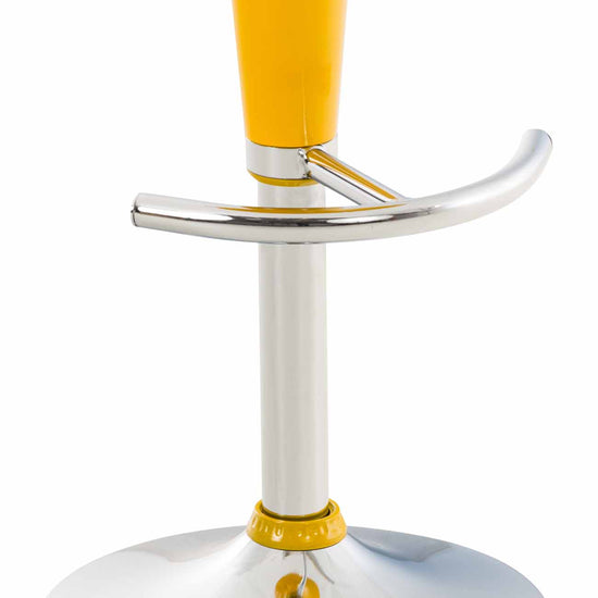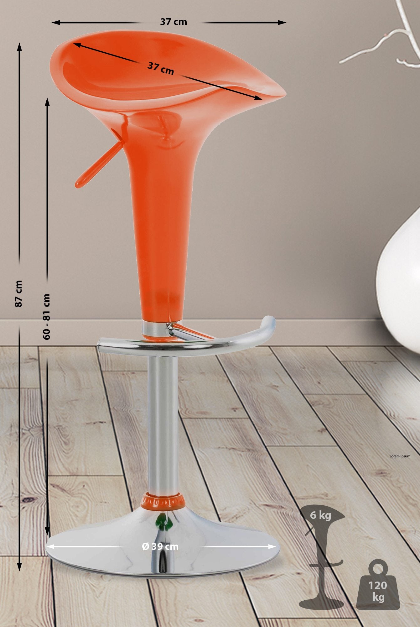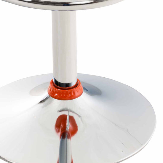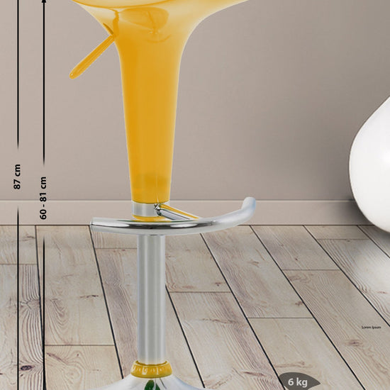 Made of durable polypropylene , this bar stool is easy to clean. The chrome-plated, trumpet-shaped base features a footrest for added comfort. A rubber ring under the base prevents damage to the floor.