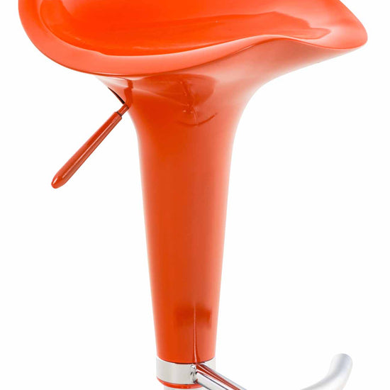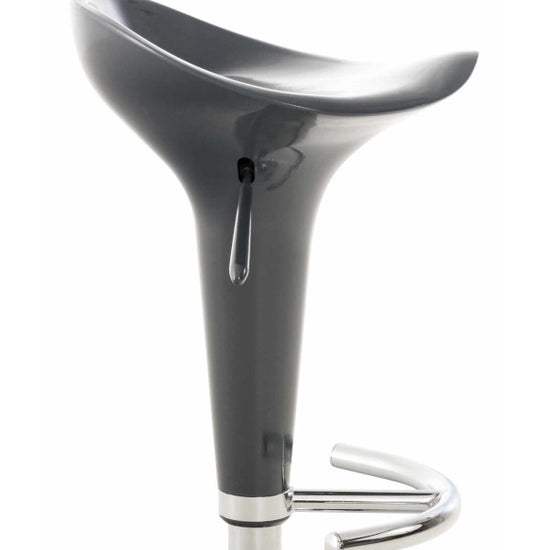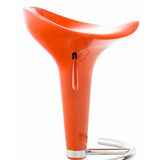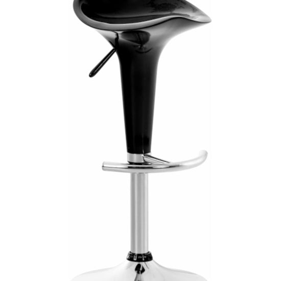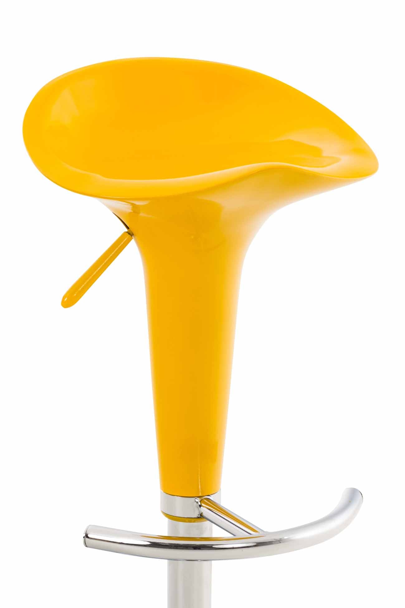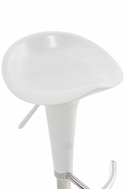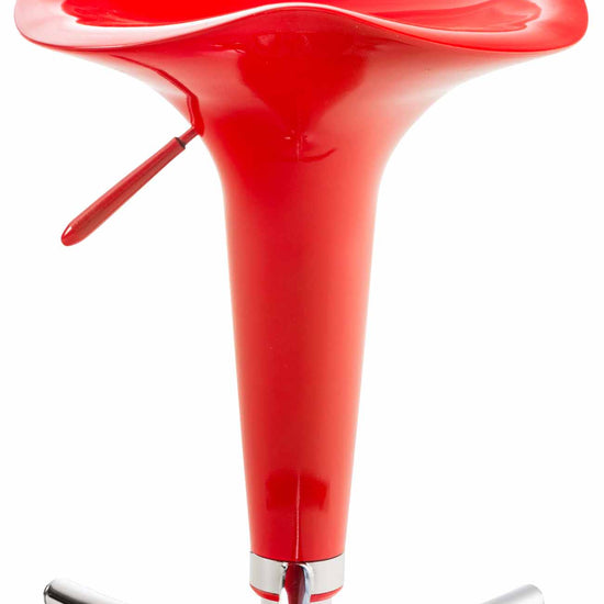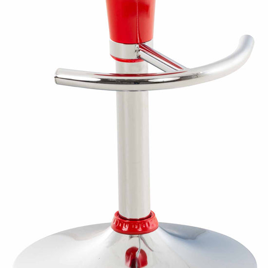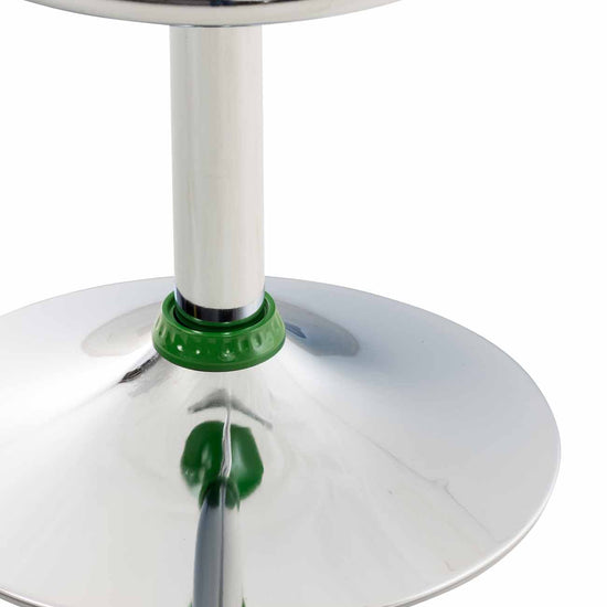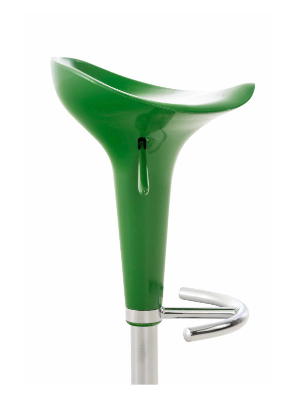 Made of durable polypropylene , this bar stool is easy to clean. The chrome-plated, trumpet-shaped base features a footrest for added comfort. A rubber ring under the base prevents damage to the floor.
