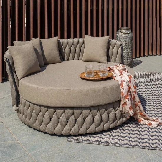 Rebecca 133 Aluminium outdoor sofa, exclusive and original, with a modern design, with a black aluminium structure and 100% Olefin braiding.