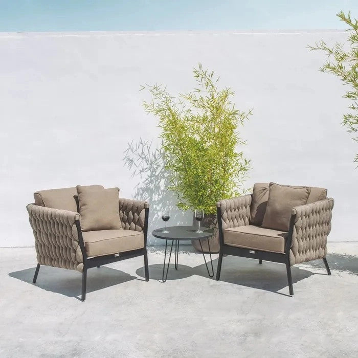 Rebecca Aluminum 1-Seater Sofa, exclusive and original, with a modern design, with a black and braided aluminum structure, 100% Olefins.