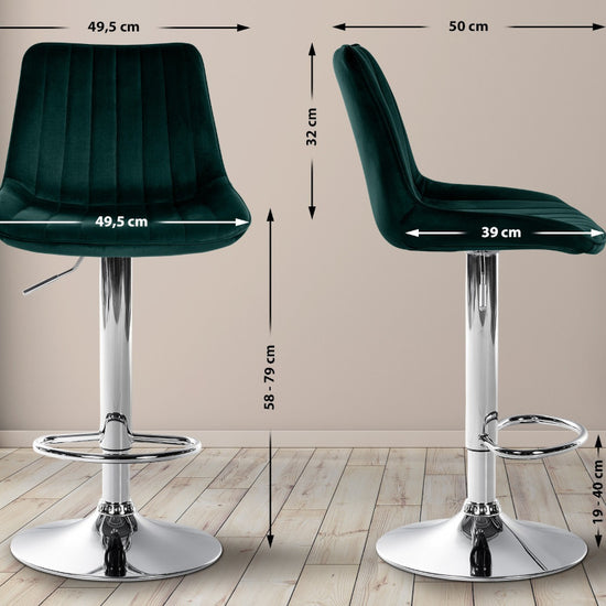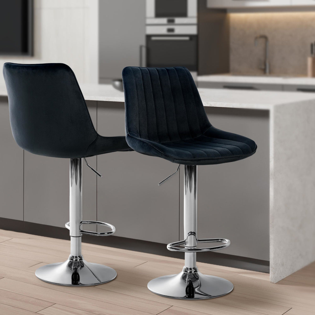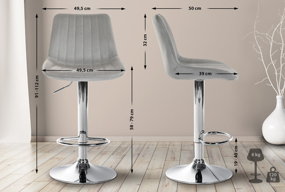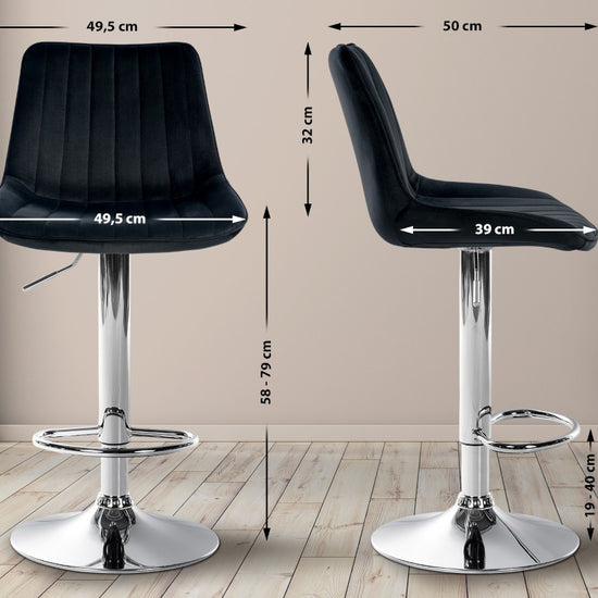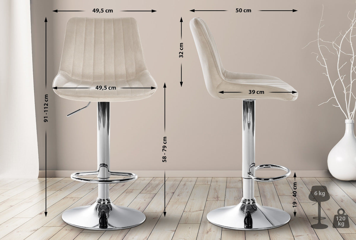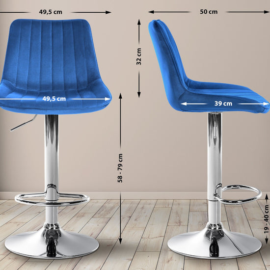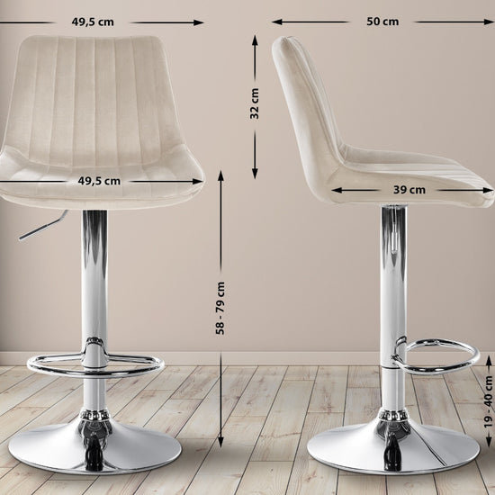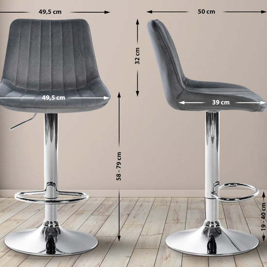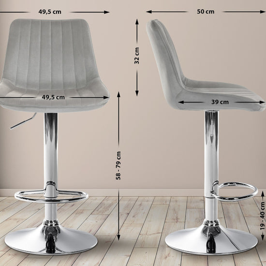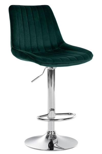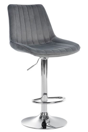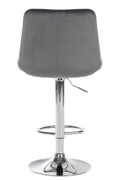 Toni Chrome Velvet Bar Stool is characterized by its elegant and timeless design.