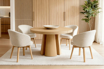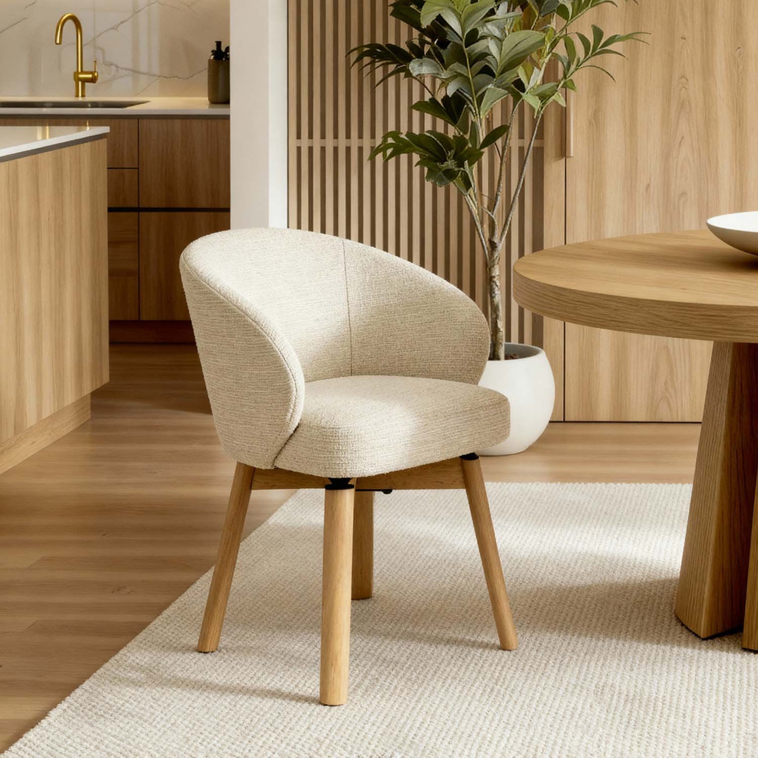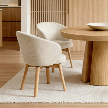The Virgínia chair is the definition of modern warmth. Its enveloping and welcoming design rests on elegant beech wood legs, whose natural tone gives the set an organic and timeless touch.