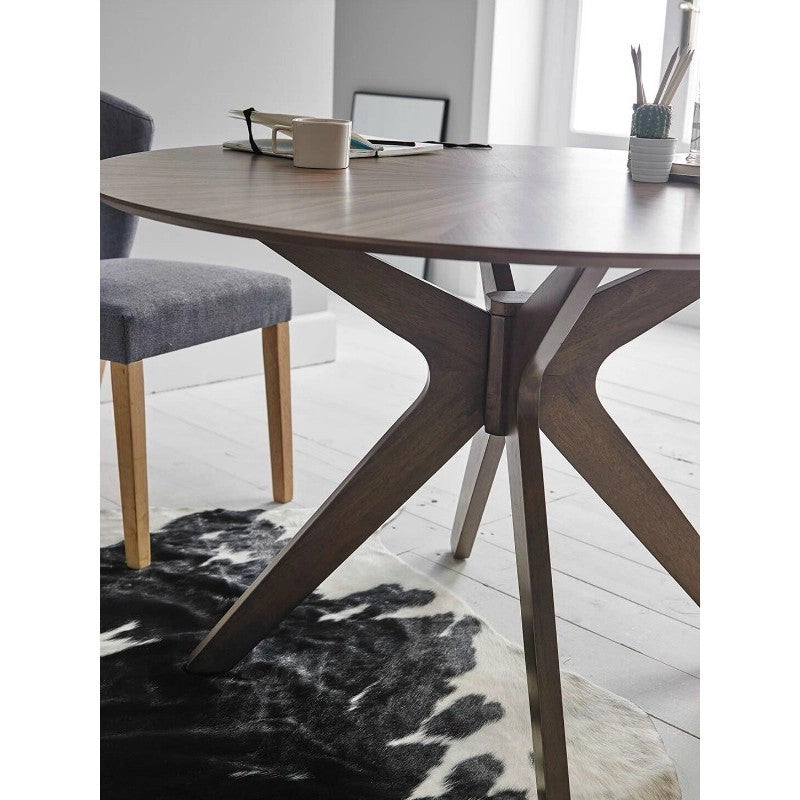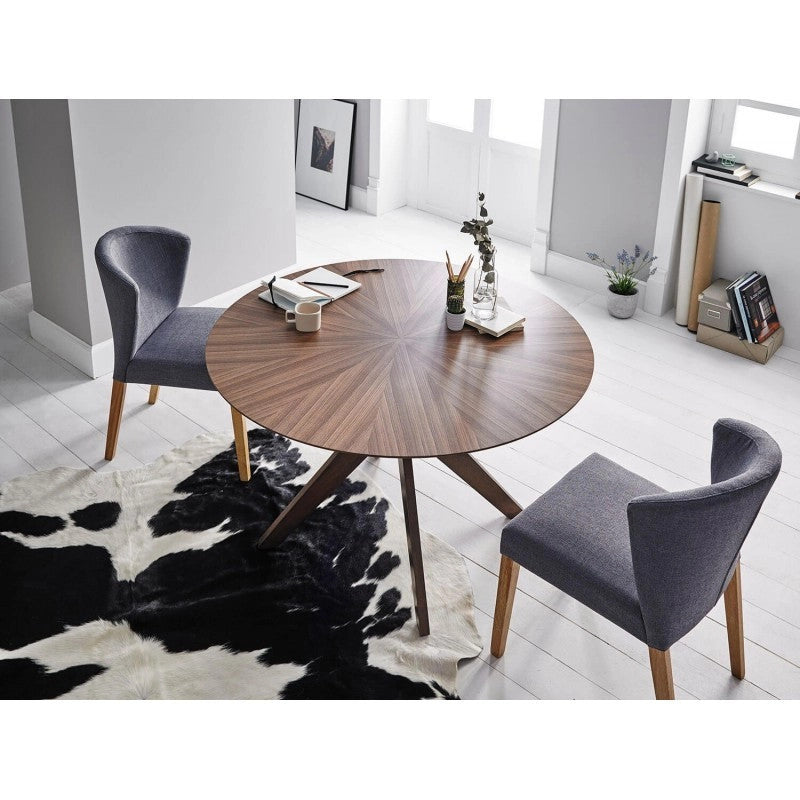 Wooden table with 120cm diameter and structure and top in walnut or oak wood 25mm thick.