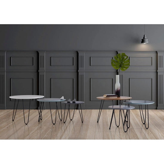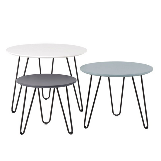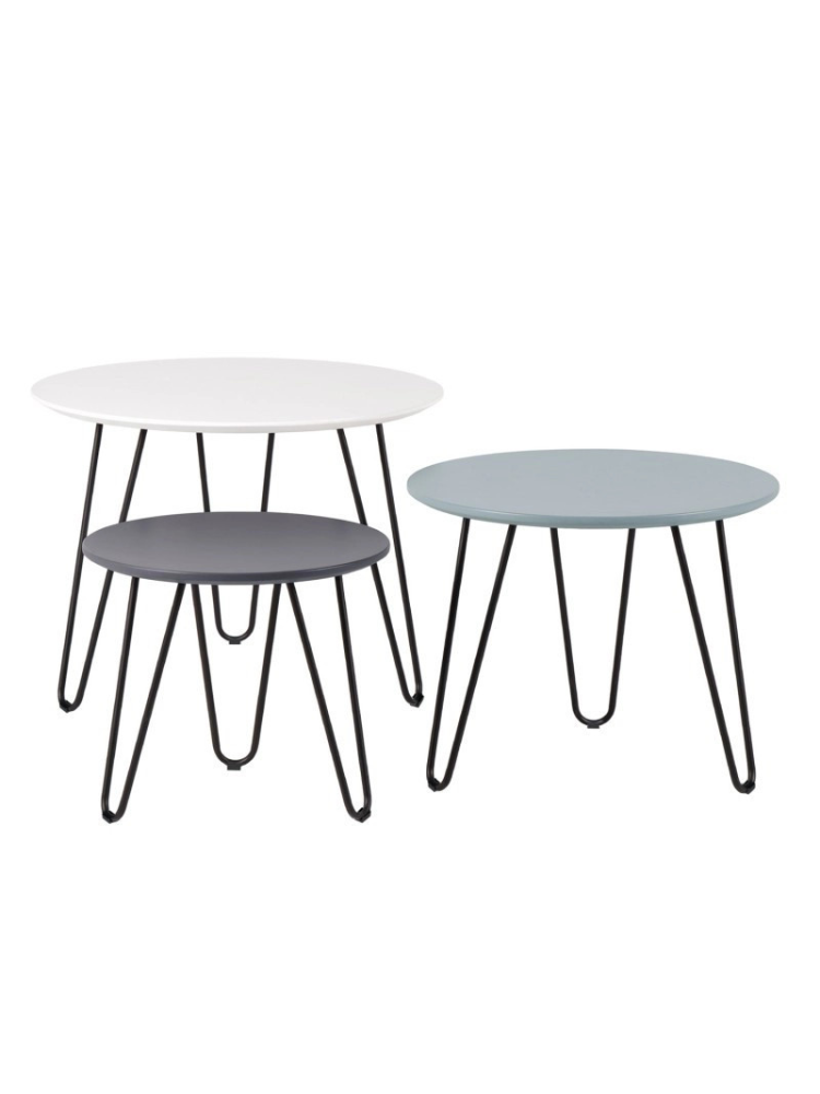 Conjunto de 3 mesas con medidas ø 60 cm, ø 50 cm y ø 40 cm