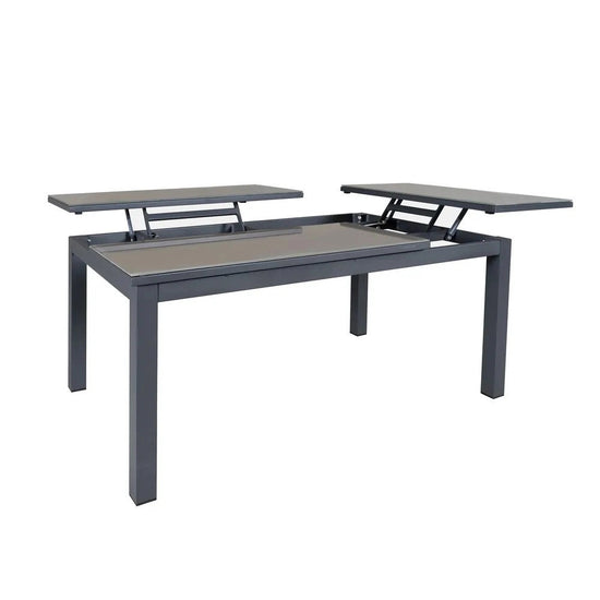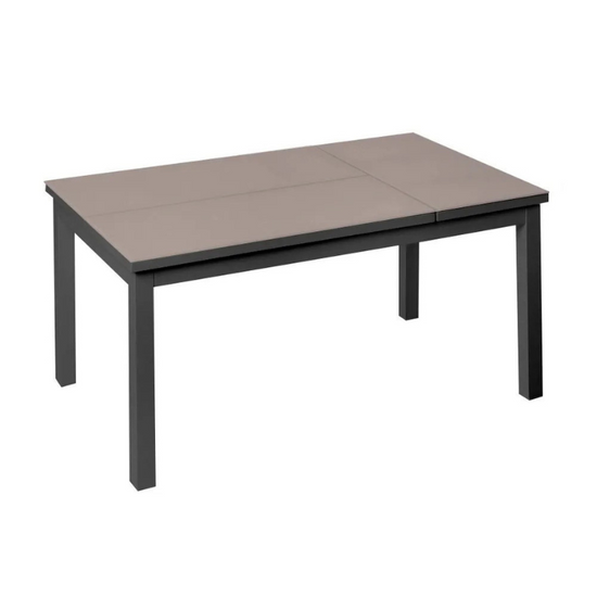 Fabricado en aluminio y cristal de mesa templado de 5mm.