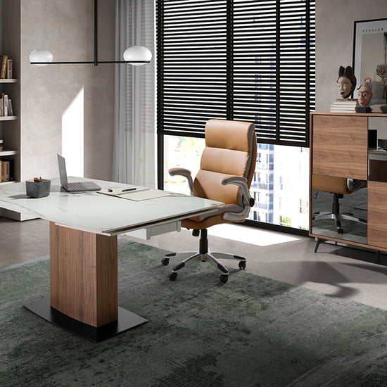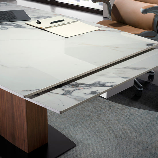Su sobre de mármol porcelánico es resistente y duradero, ofreciendo un toque de vanguardia y elegancia al ambiente.