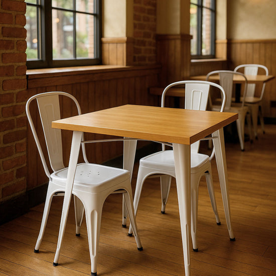 La Mesa de Comedor Cuadrada Leeds en Madera Natural 70 cm está considerada un icono del estilo industrial.