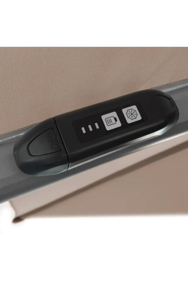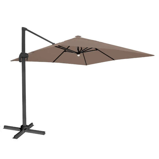 Cree un ambiente sofisticado y acogedor con esta sombrilla iluminada de 3 metros de diámetro. La iluminación LED integrada en las varillas y el centro del toldo proporciona una luz suave y elegante, perfecta para cenas o momentos de relax en el jardín.
