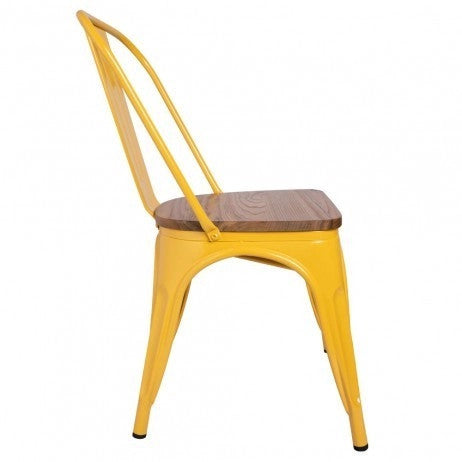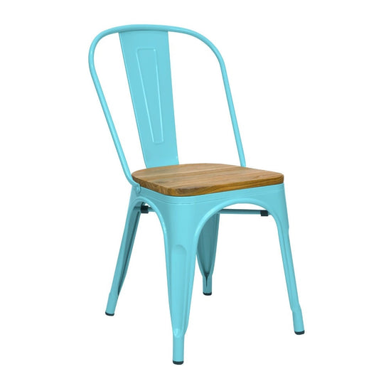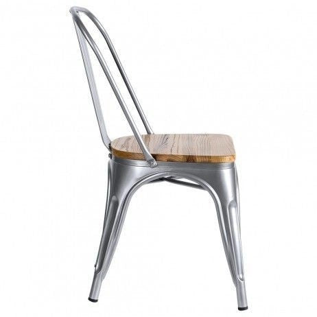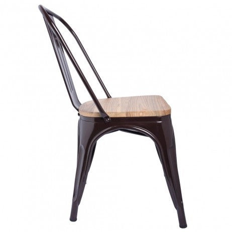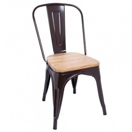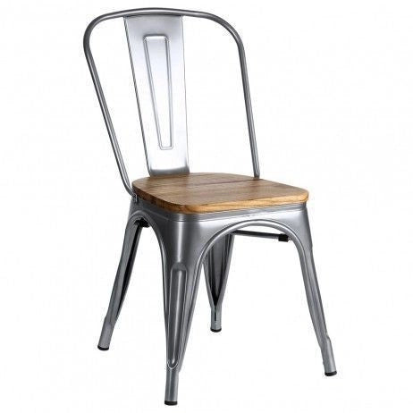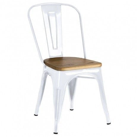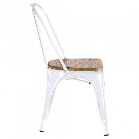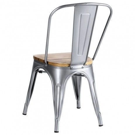 Silla de comedor Leeds fabricada en madera natural, inspirada en la silla Tolix de Xavier Pauchard.