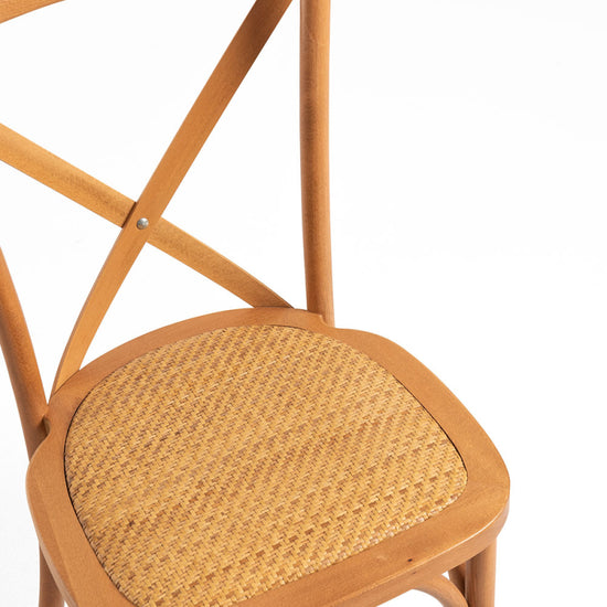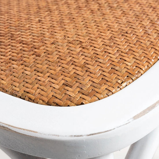 Pensamos que su estructura de madera pintada en blanco antiguo la hace visualmente más ligera. Sin embargo, el contraste con la bandolera marrón le da un toque variado además de ser mucho más cómodo.