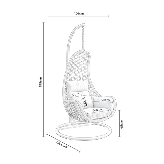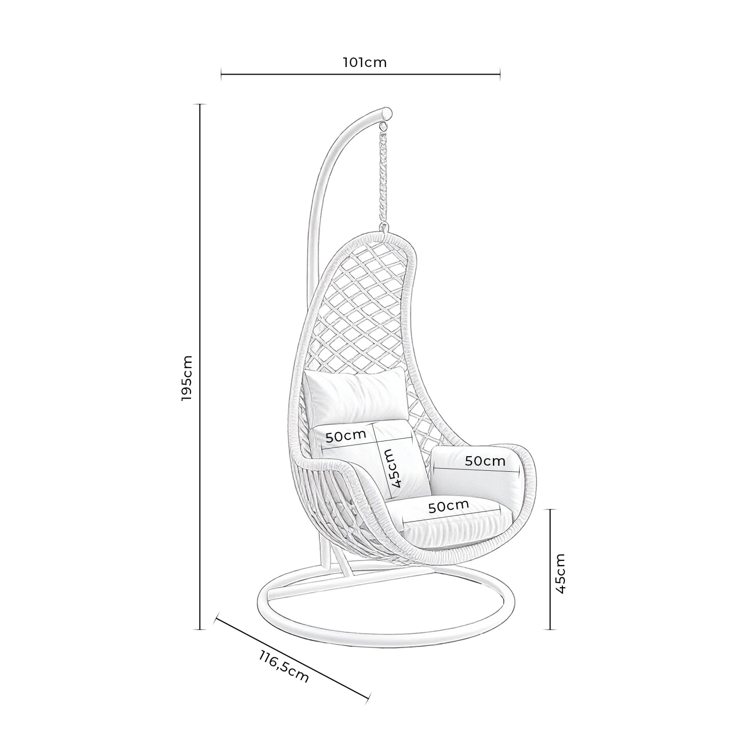 Con un diseño atractivo y envolvente, la silla colgante Constanza redefine la relajación con un estilo contemporáneo y una silueta más elegante.