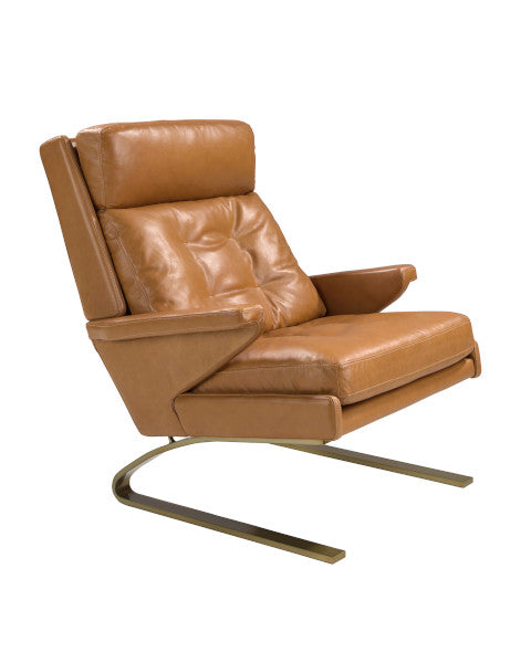 Sillón de diseño moderno con brazos, asiento y respaldo tapizados en piel de vacuno. Tanto por su estilo como por sus patas de acero pintado en oro, este sillón es la combinación perfecta entre diseño y comodidad.