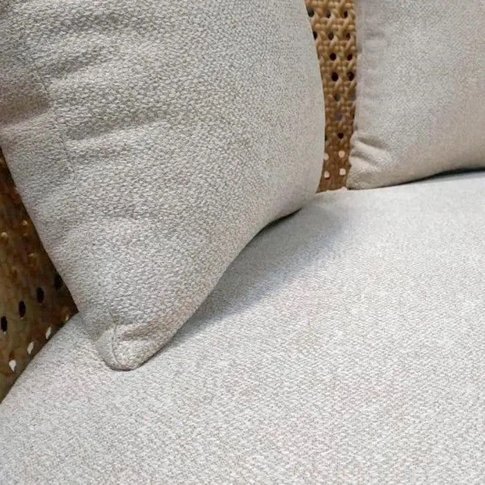 Sofá de exterior de aluminio Niva 133, exclusivo y original, de diseño moderno, con estructura de aluminio en color negro y trenzado con mimbre sintético en color natural.