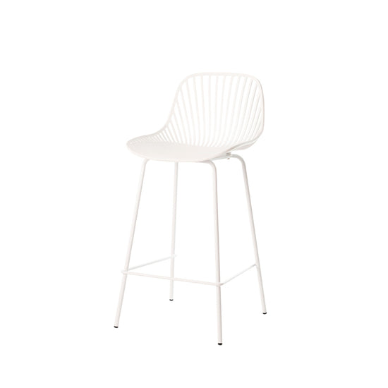 O Banco de bar Peyton em metal com assento em polipropileno em três acabamentos à escolha: branco, menta e preto.
