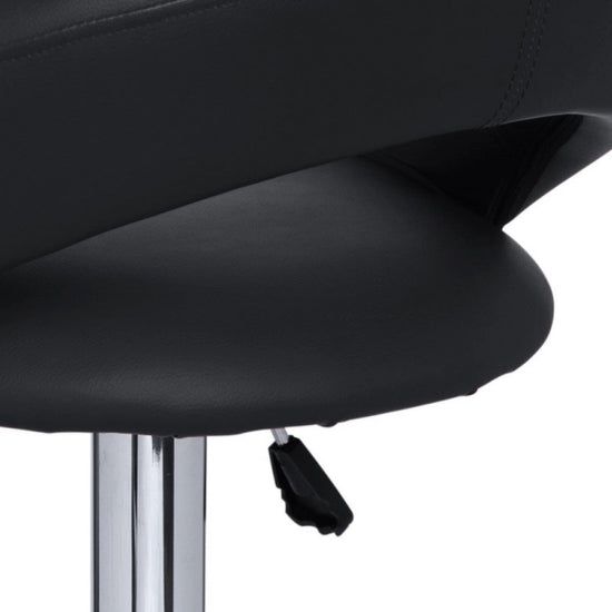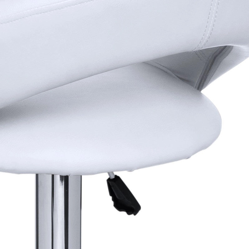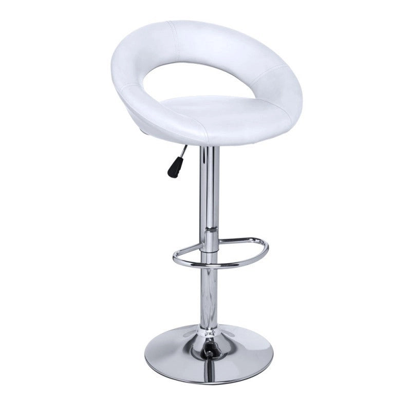 O assento giratório acolchoado forrado em pele sintética, está disponível em várias cores.