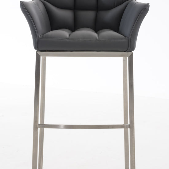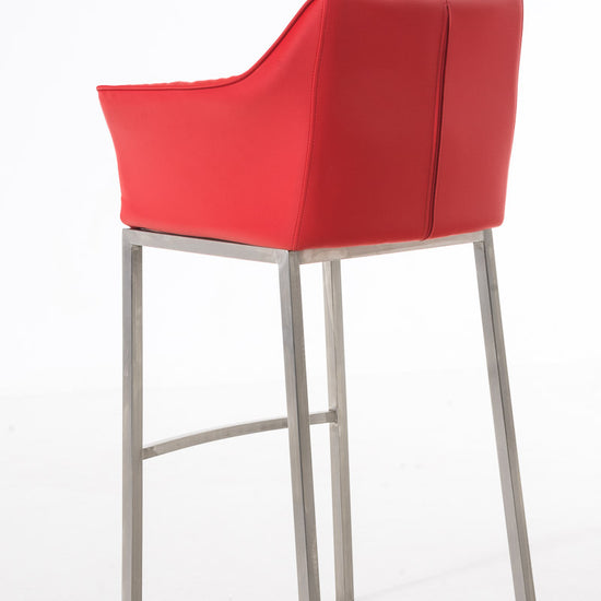 Garanta já o seu banco alto estofado em pele sintética com estrutura metálica cromada de 4 pés e dê um toque elegante à sua decoração!