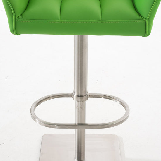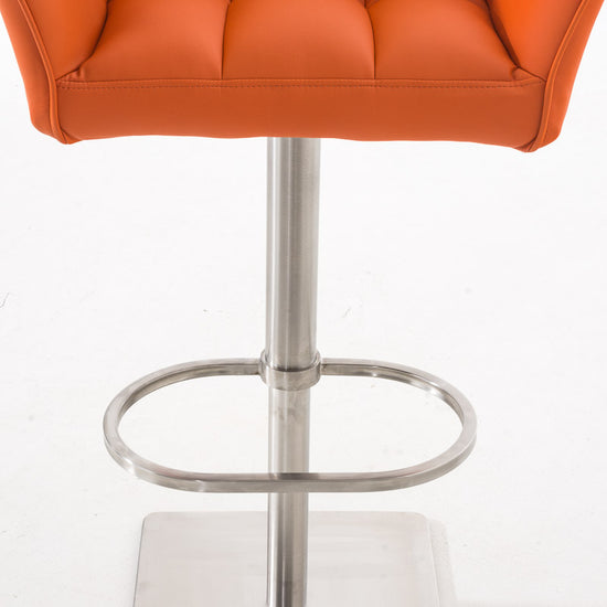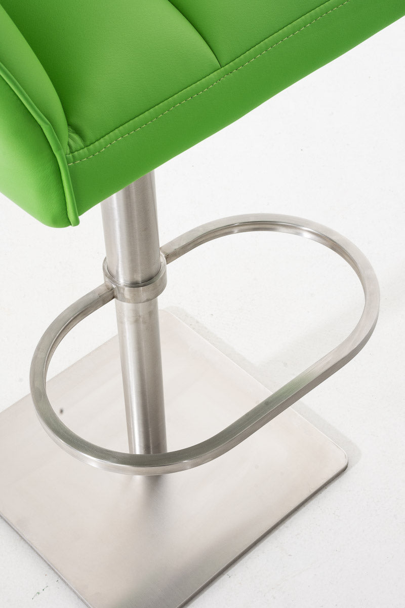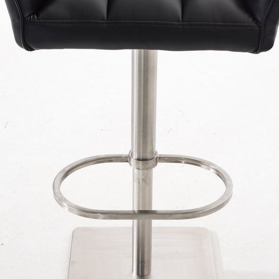 O banco alto tem uma altura ajustável, permitindo que o assento seja regulado entre os 58 e os 83 cm. A função giratória de 360 graus facilita a movimentação. O apoio para os pés integrado oferece apoio às pernas.