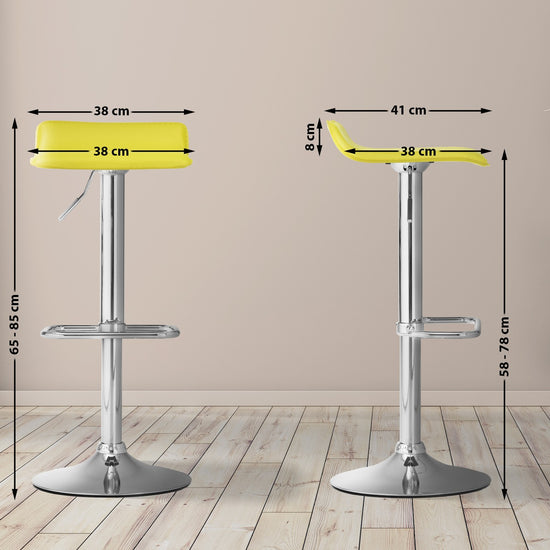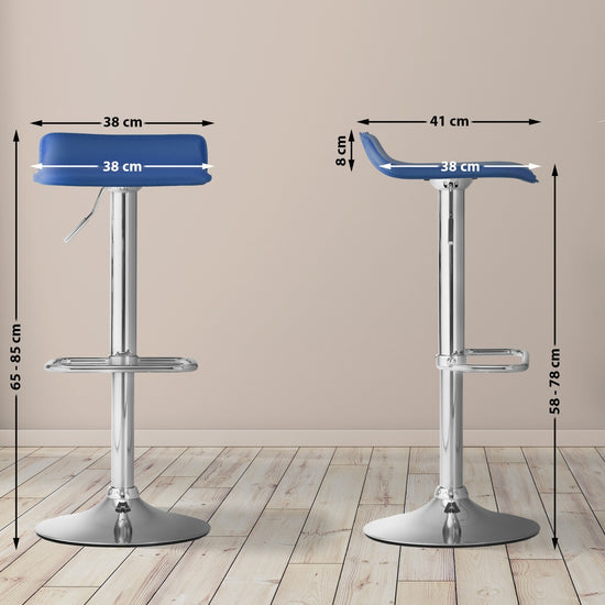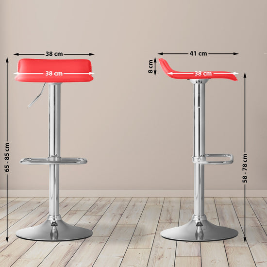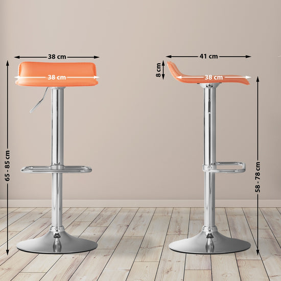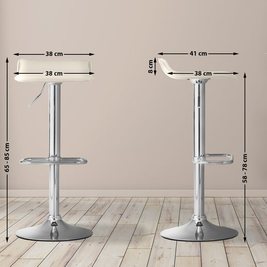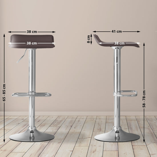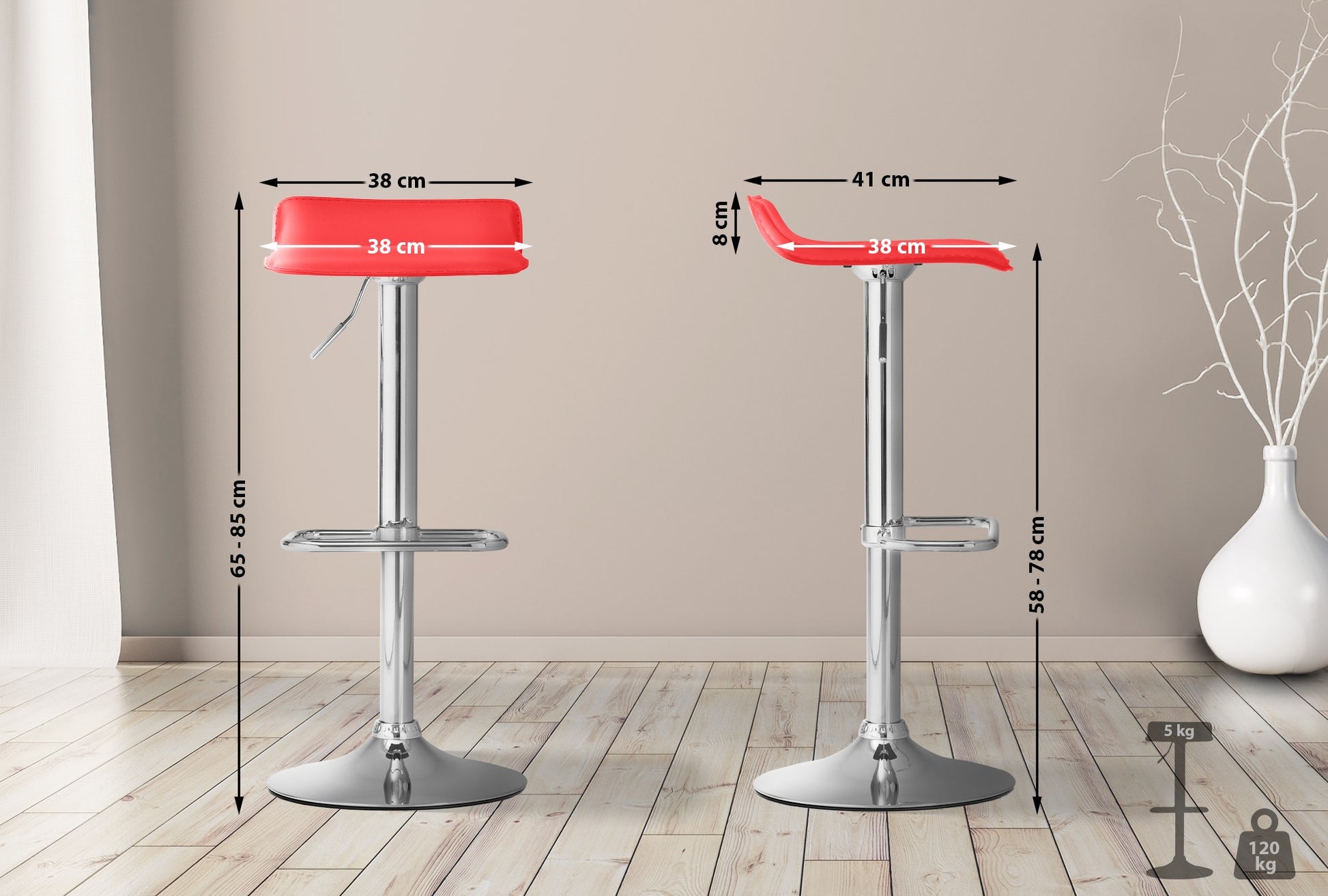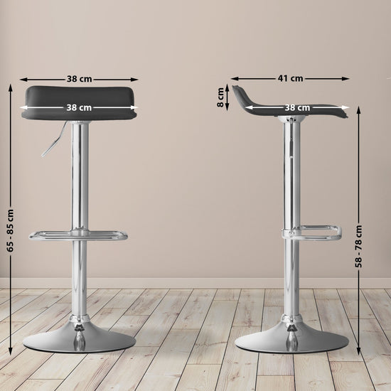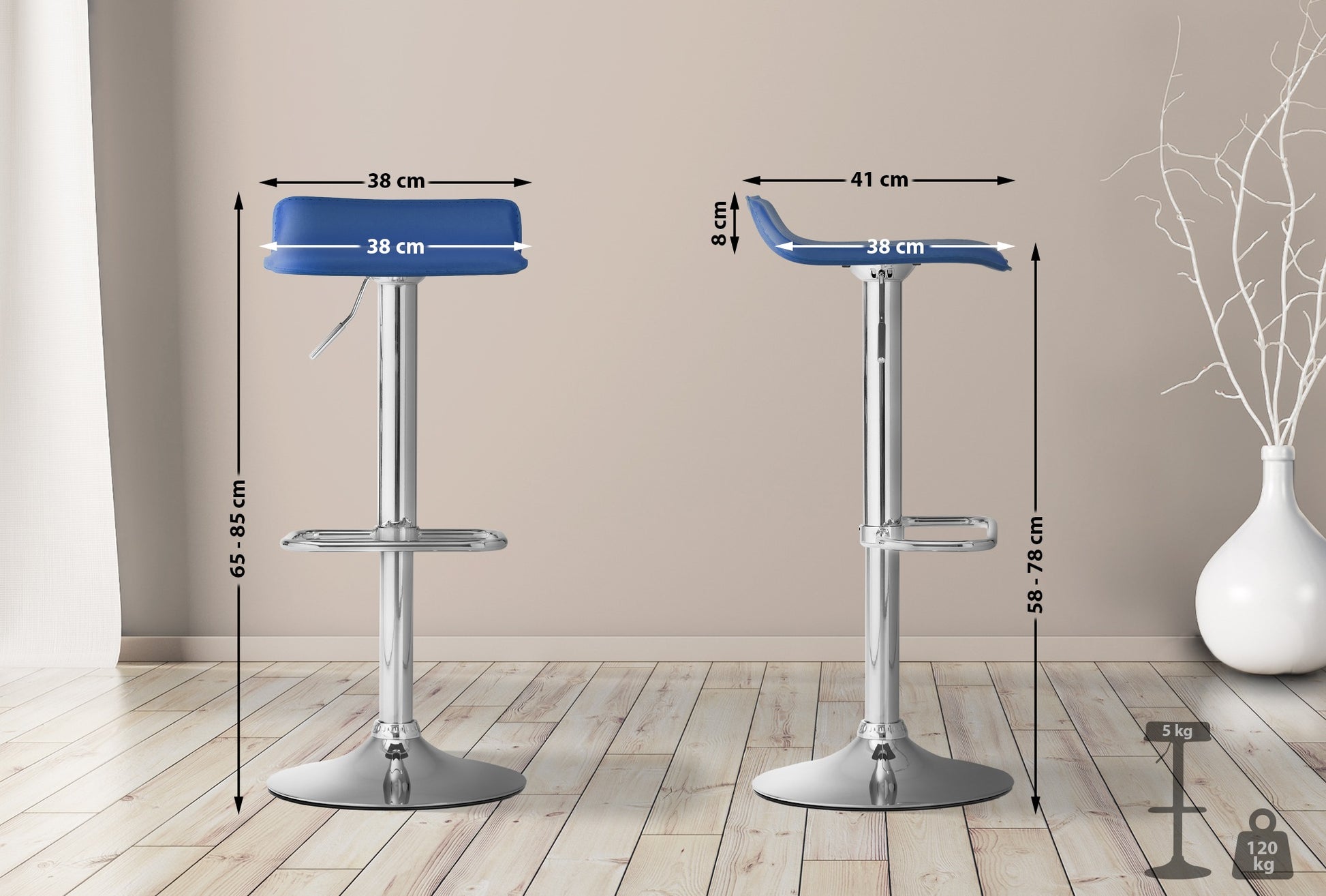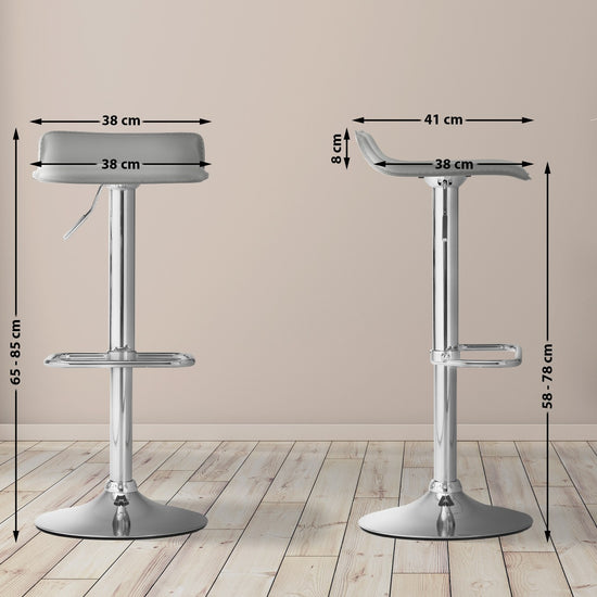 Material da estrutura: Aço inoxidável Material do assento: Pele Sintética Dimensão total: 38 cm x 41 cm x 87 cm Altura total: 87 cm Altura Variável: 65-85 Largura total: 38 cm Profundidade Total: 41 cm