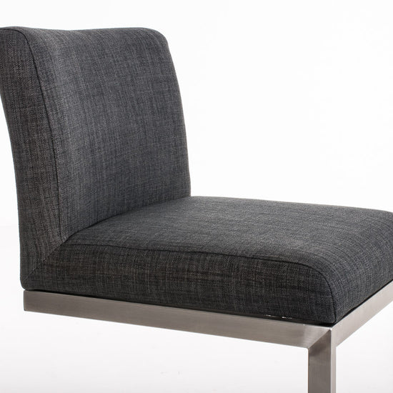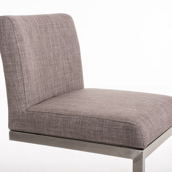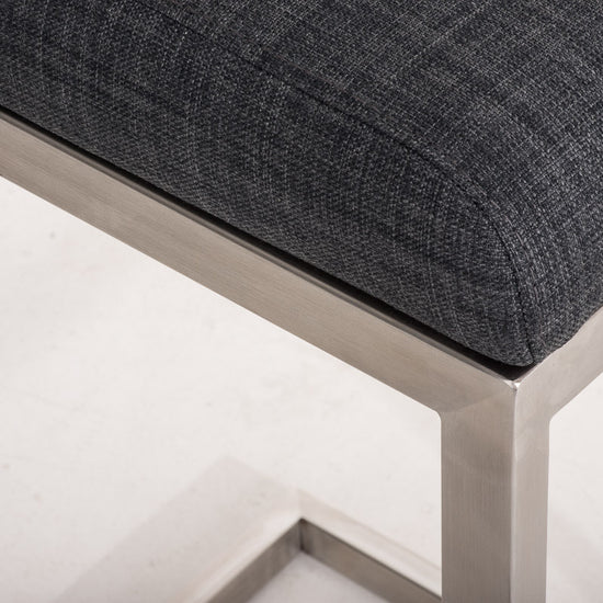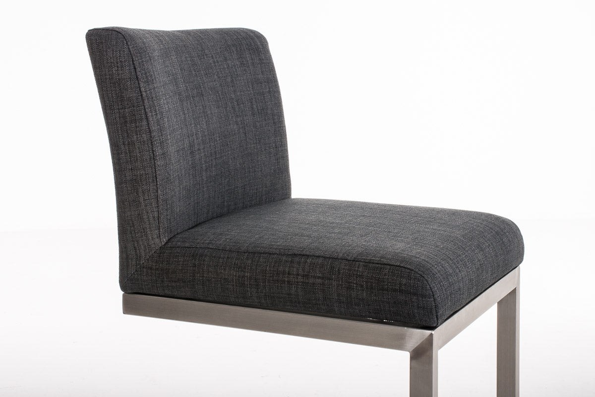 A sua estrutura em balanço com linhas retas, fabricada em aço inoxidável escovado, cria um apelo visual marcante, e o suave movimento de balanço do assento proporciona uma sensação muito agradável.
