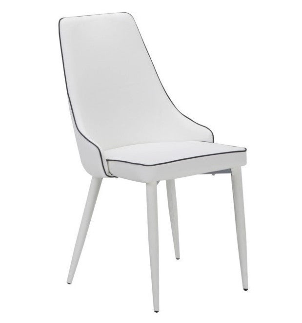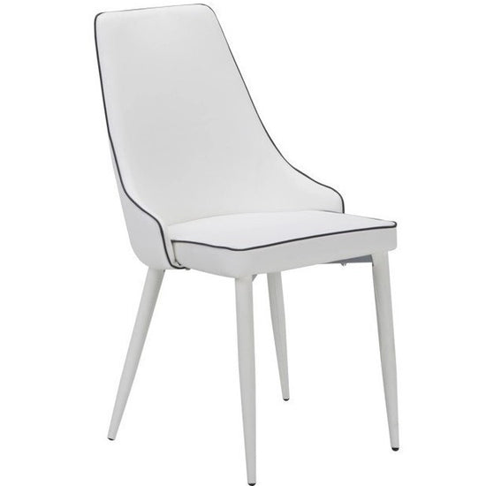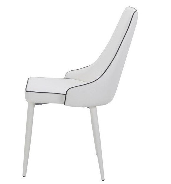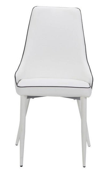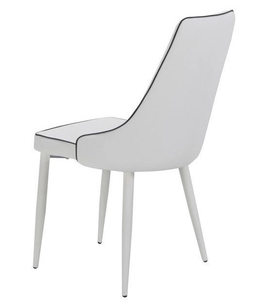 Cadeira Bruges apresenta-se com o assento e as pernas totalmente estofada em pele sintética da mesma cor.