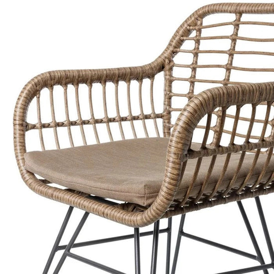 Cadeira com estrutura em aço com acabamento em epóxi branco e entrelaçado em vime, almofadas com capas removíveis,100% Poliéster.