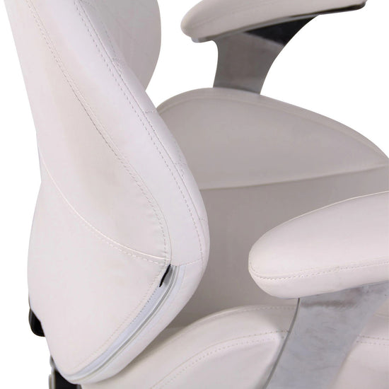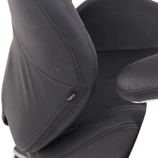 O estofo de alta qualidade e de fácil manutenção, em pele sintética, garantem que se sente confortavelmente por várias horas.