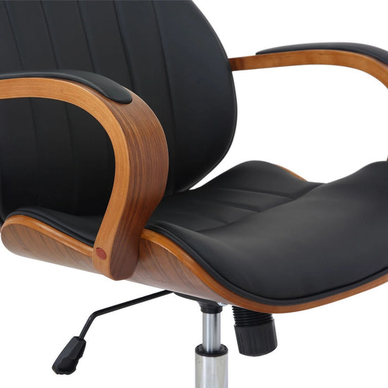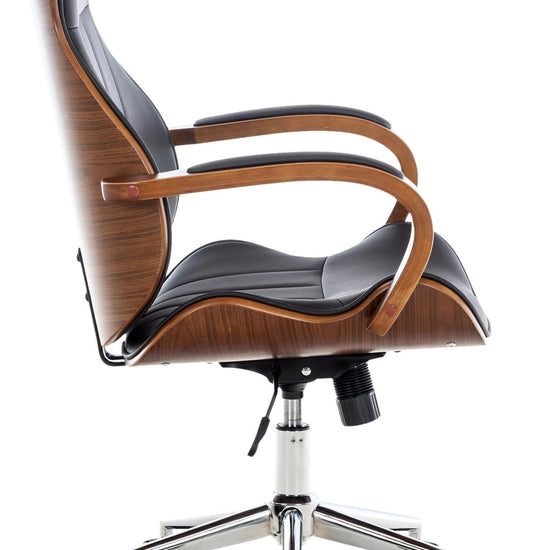 A estrutura de madeira em carvalho ou nogueira torna esta cadeira giratória um atrativo absoluto e confere-lhe um design elegante.
