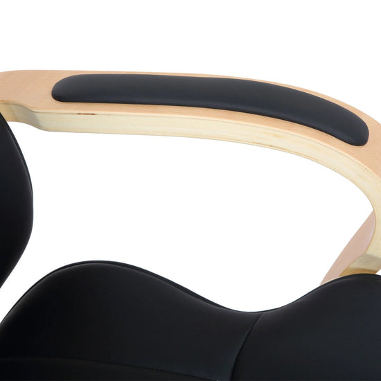 O estofo de alta qualidade e de fácil manutenção, em pele sintética, garantem que se sente confortavelmente por várias horas.