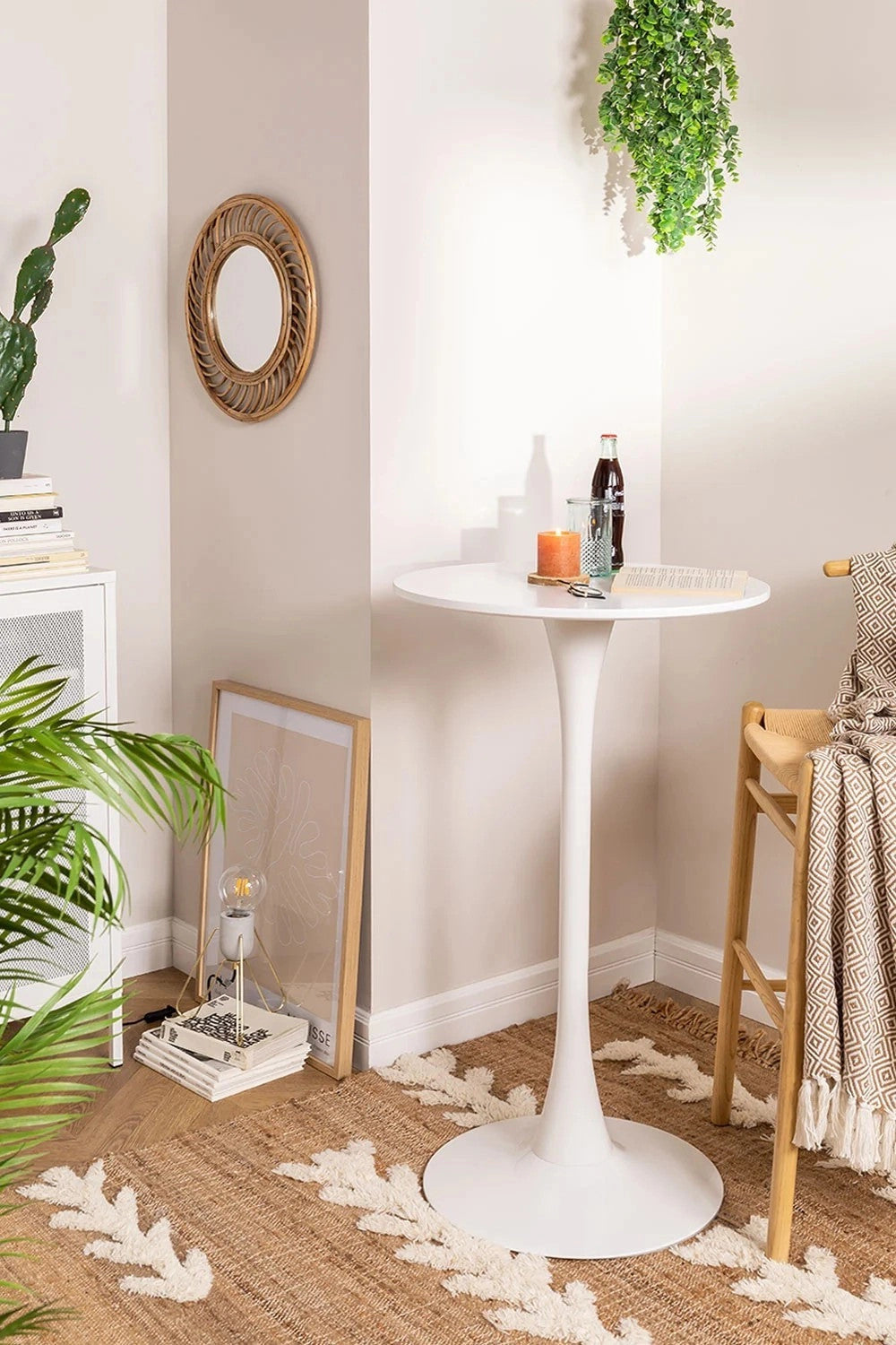 A Mesa de bar Ribe 60 cm é uma peça deslumbrante, inspirada nos desenhos dos anos 50 com o objetivo de libertar o máximo de espaço possível.