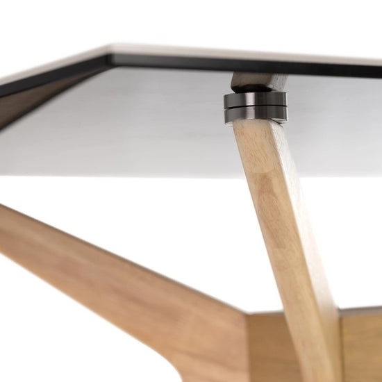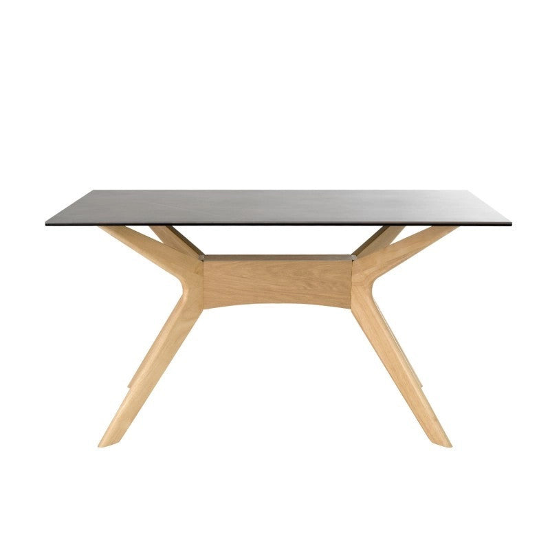 Mesa de sala de jantar Baden 140 ideal tanto pelo seu design elegante que se adapta a todos os tipos de salas de jantar modernas como pelos seus acabamentos em porcelana, vidro e madeira de carvalho confere-lhe um aspeto natural e agradável.