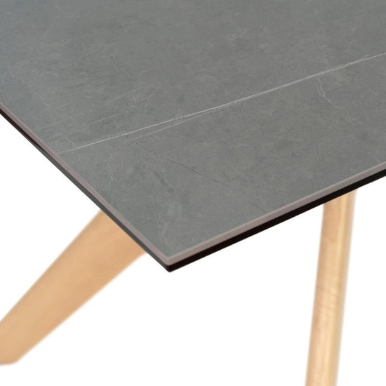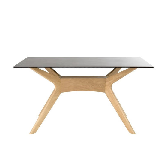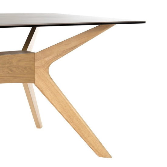 Mesa de sala de jantar Baden 160 ideal tanto pelo seu design elegante que se adapta a todos os tipos de salas de jantar modernas como pelos seus acabamentos em porcelana, vidro e madeira de carvalho confere-lhe um aspeto natural e agradável.