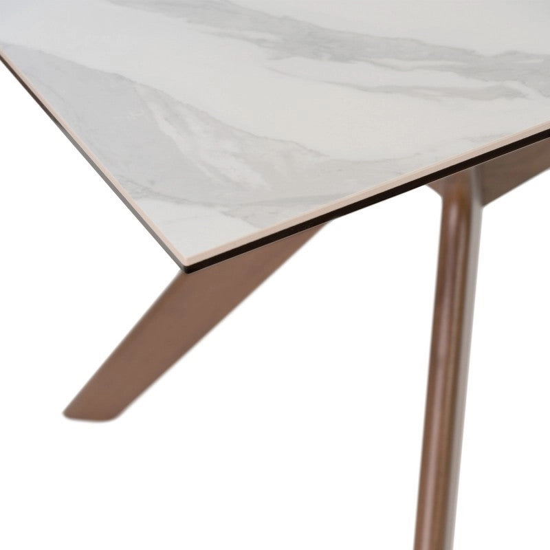 Mesa de sala de jantar Baden 160 ideal tanto pelo seu design elegante que se adapta a todos os tipos de salas de jantar modernas como pelos seus acabamentos em porcelana, vidro e madeira de nogueira confere-lhe um aspeto natural e agradável.