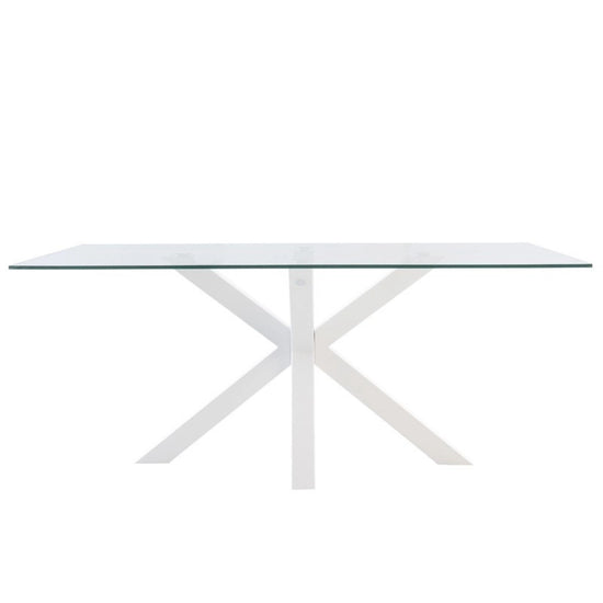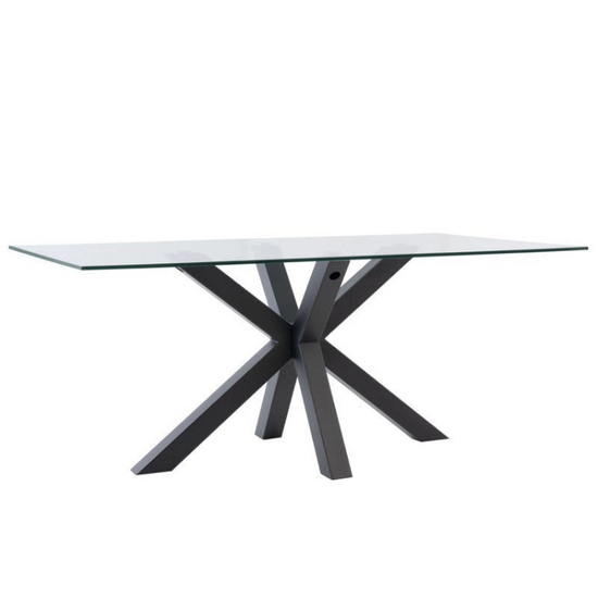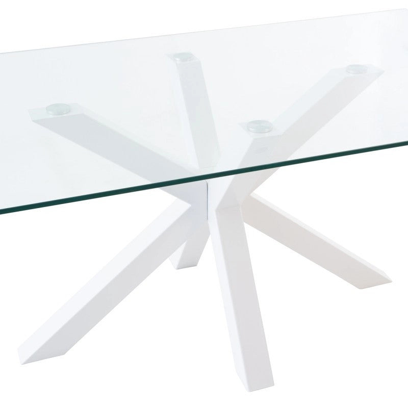 Mesa de vidro temperado de 1,2 cm retangular de 180 x100 cm com estrutura e pés de aço pintados em epóxi.