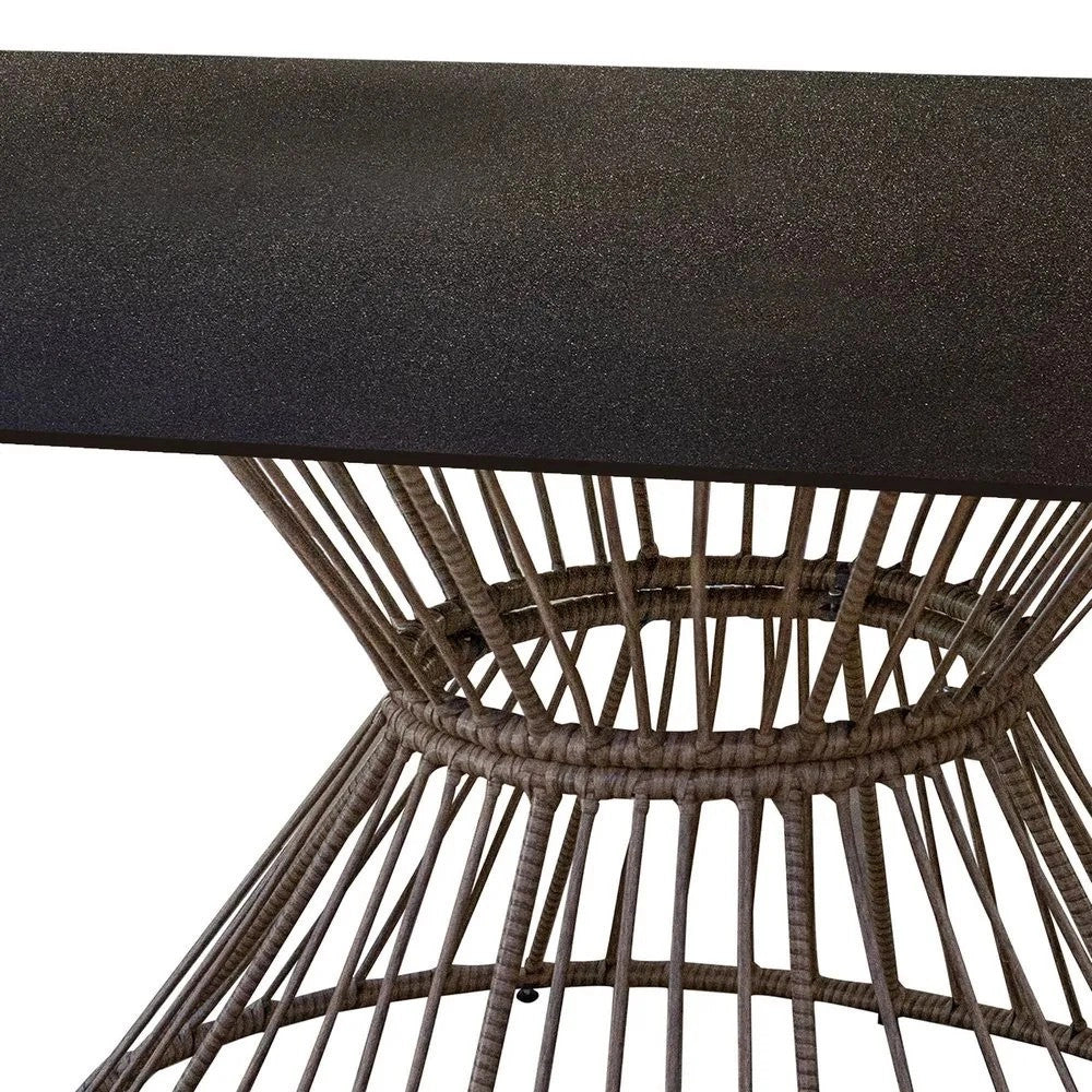 Mesa com estrutura em aço com acabamento em epóxi preto e entrelaçado em vime.