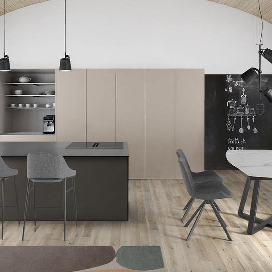 As suas pernas em aço inoxidável preto e a sua adaptabilidade fazem dele um móvel totalmente funcional e versátil para o uso diário.