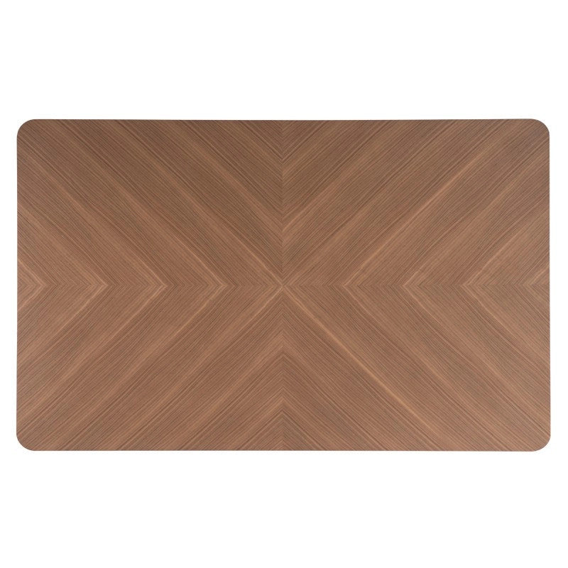 Mesa de madeira retangular de 140x90cm com estrutura e pés em madeira de hevea e tampo fixo com acabamento em carvalho ou nogueira de 30mm de espessura.