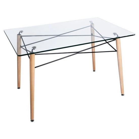 A Mesa de sala de jantar Oslo Glass Retangular 120 x 80 cm, um aliado único cujo design inspirado nos utensílios de cozinha nórdicos traz um toque minimalista e sofisticado a qualquer espaço.