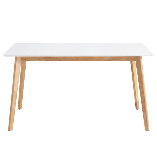 Mesa retangular de madeira de 120x80cm com pernas em madeira de faia e tampo fixo lacado a branco com 20mm de espessura.