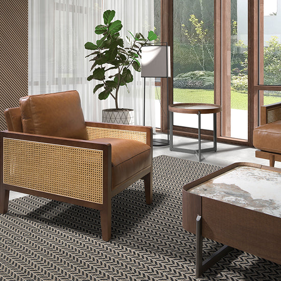 O detalhe original do tecido de vime no apoio de braço confere-lhe um toque único e exclusivo.