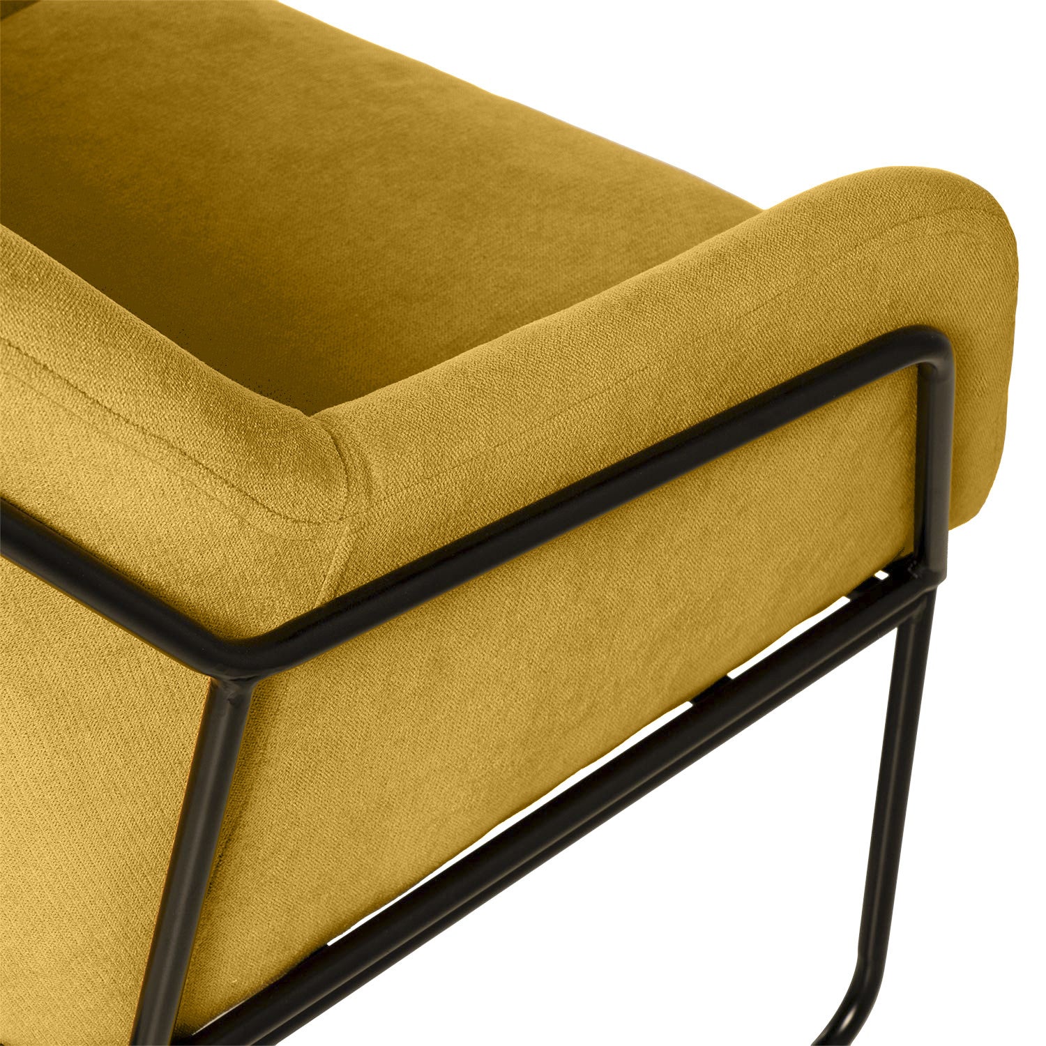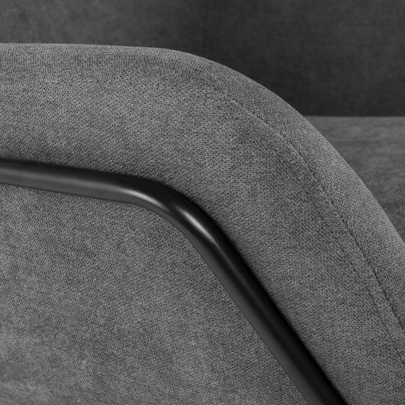 A estrutura de aço pintada em epóxi preto, muito resistente a marcas e arranhões, estofado em tecido.