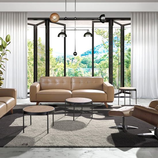 Robustez e estabilidade extra são oferecidas pela sua estrutura original em madeira folheada a nogueira natural.